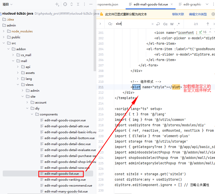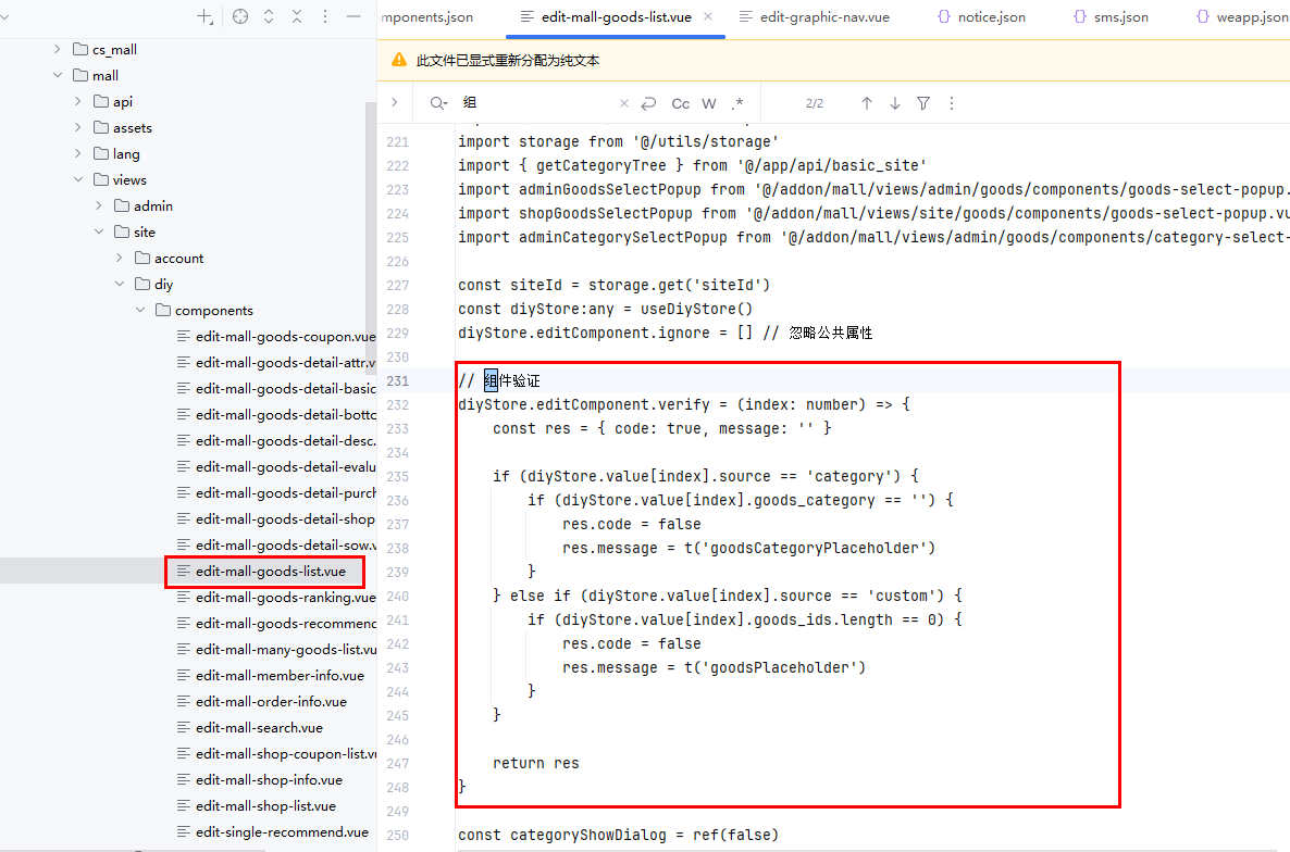 代码位置:admin/src/addon/mall/views/site/diy/components