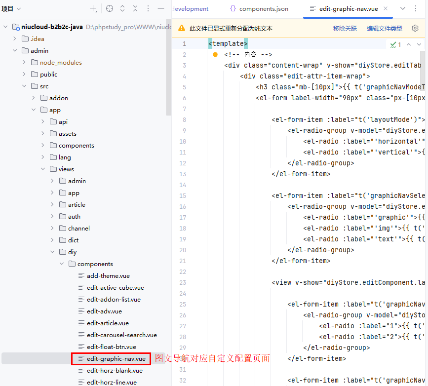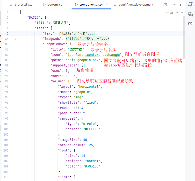 path 是 edit-graphic-nav,这里指后台 diy 管理端配置的前端代码位置
