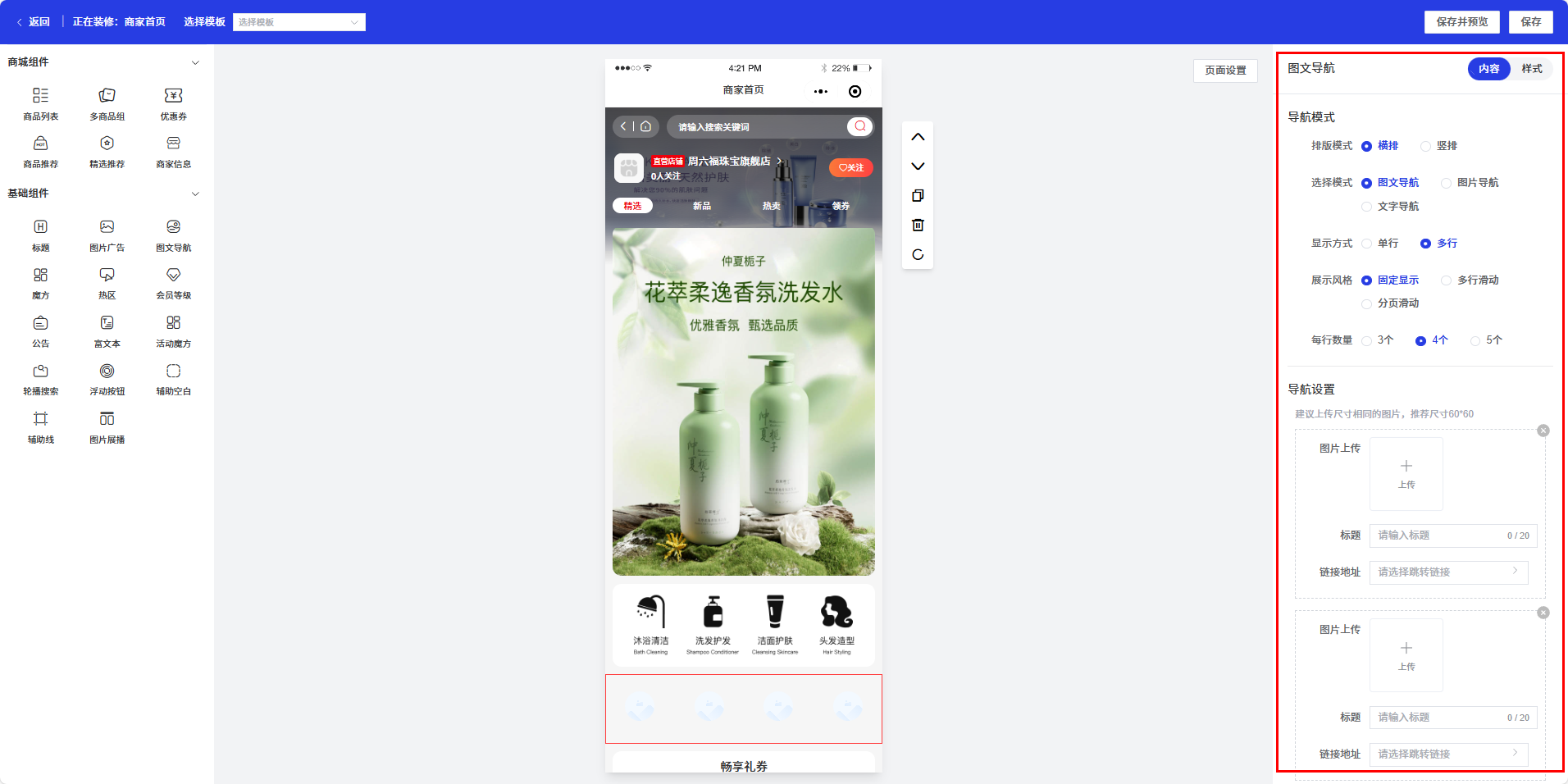 框架开发的自定义组件:系统内置的组件,如标题、图片广告、图文导航、魔方、文章、热区、公告等基础组件