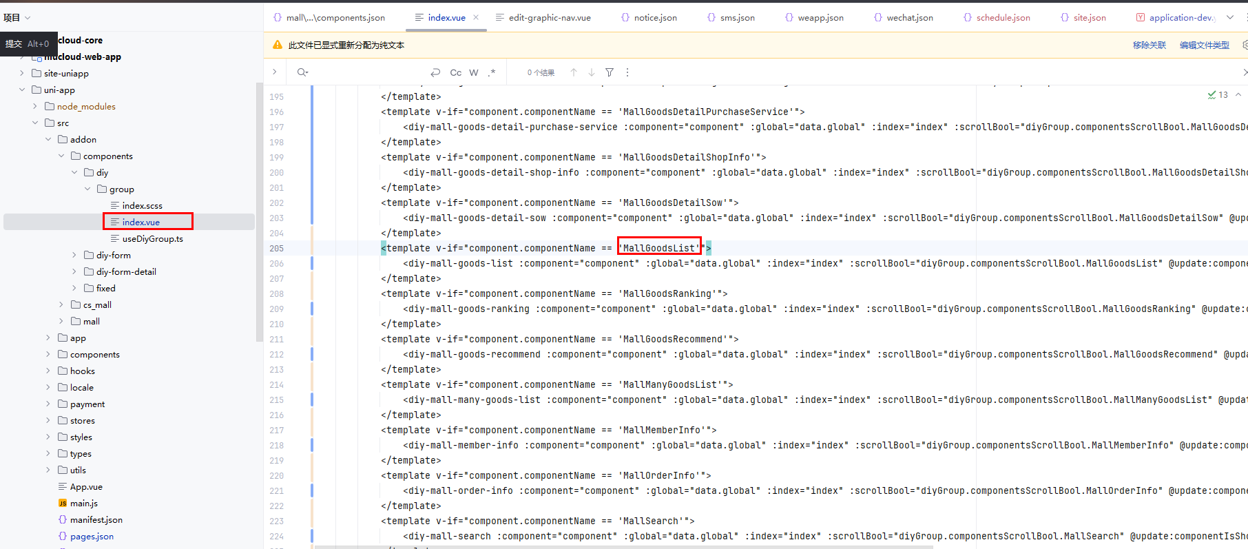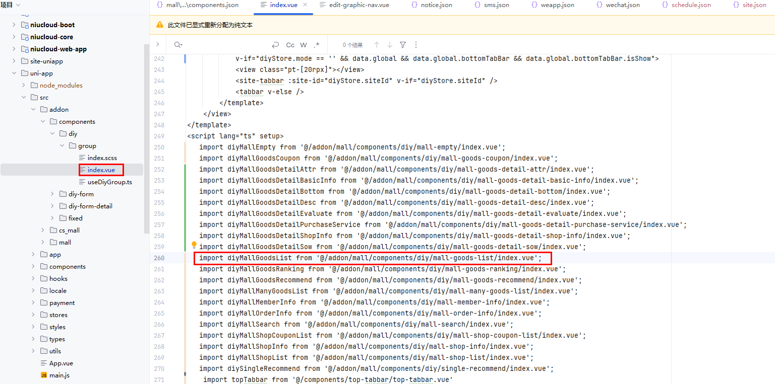 文件位置:uni-app/src/addon/components/diy/group/index.vue