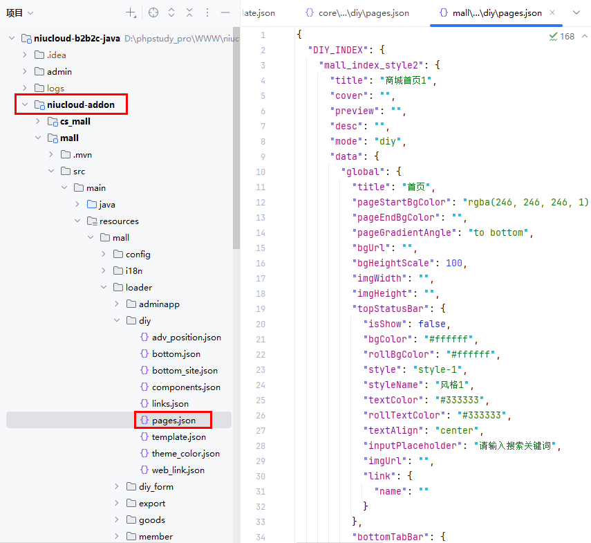 文件位置:niucloud-addon/mall/src/main/resources/mall/loader/diy/pages.json