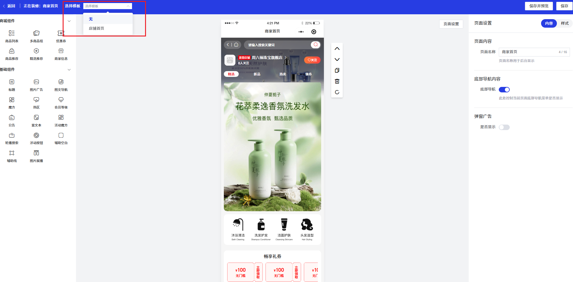 每种自定义页面类型可以定义 N 个自定义页面模板,维护好自定义页面模板后,可以在装修时快速创建、调整