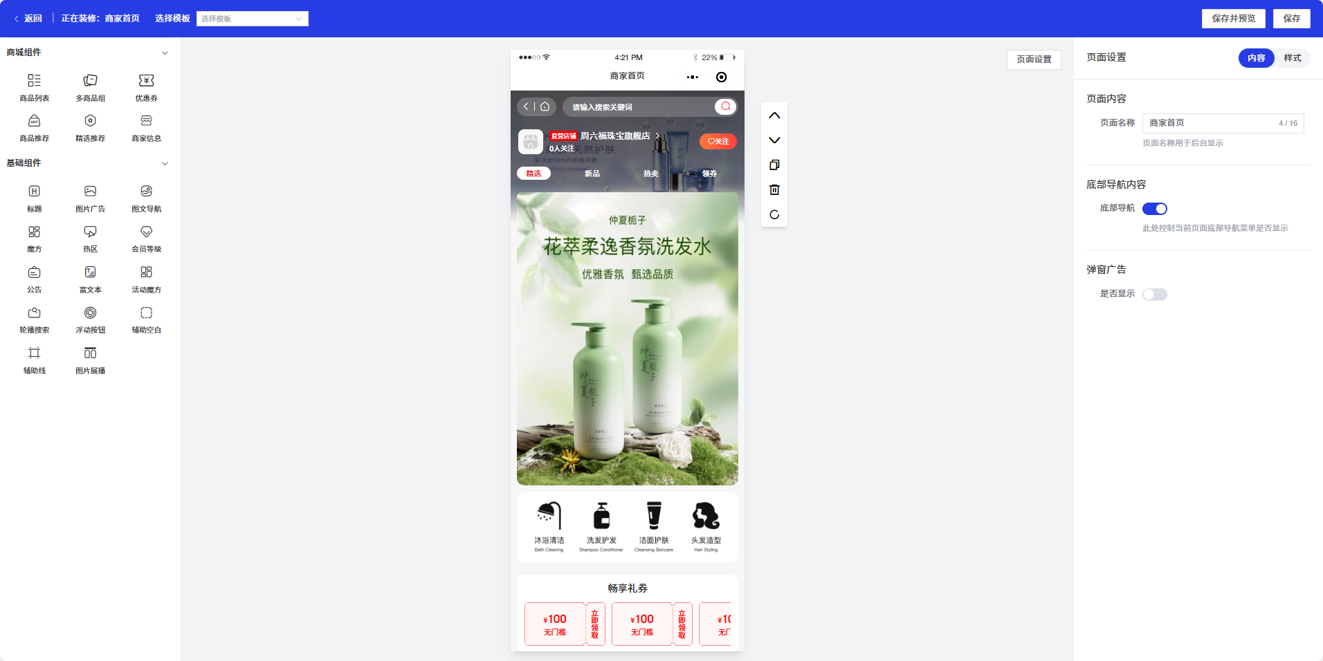 刷新后,装修页面就可以正常显示了