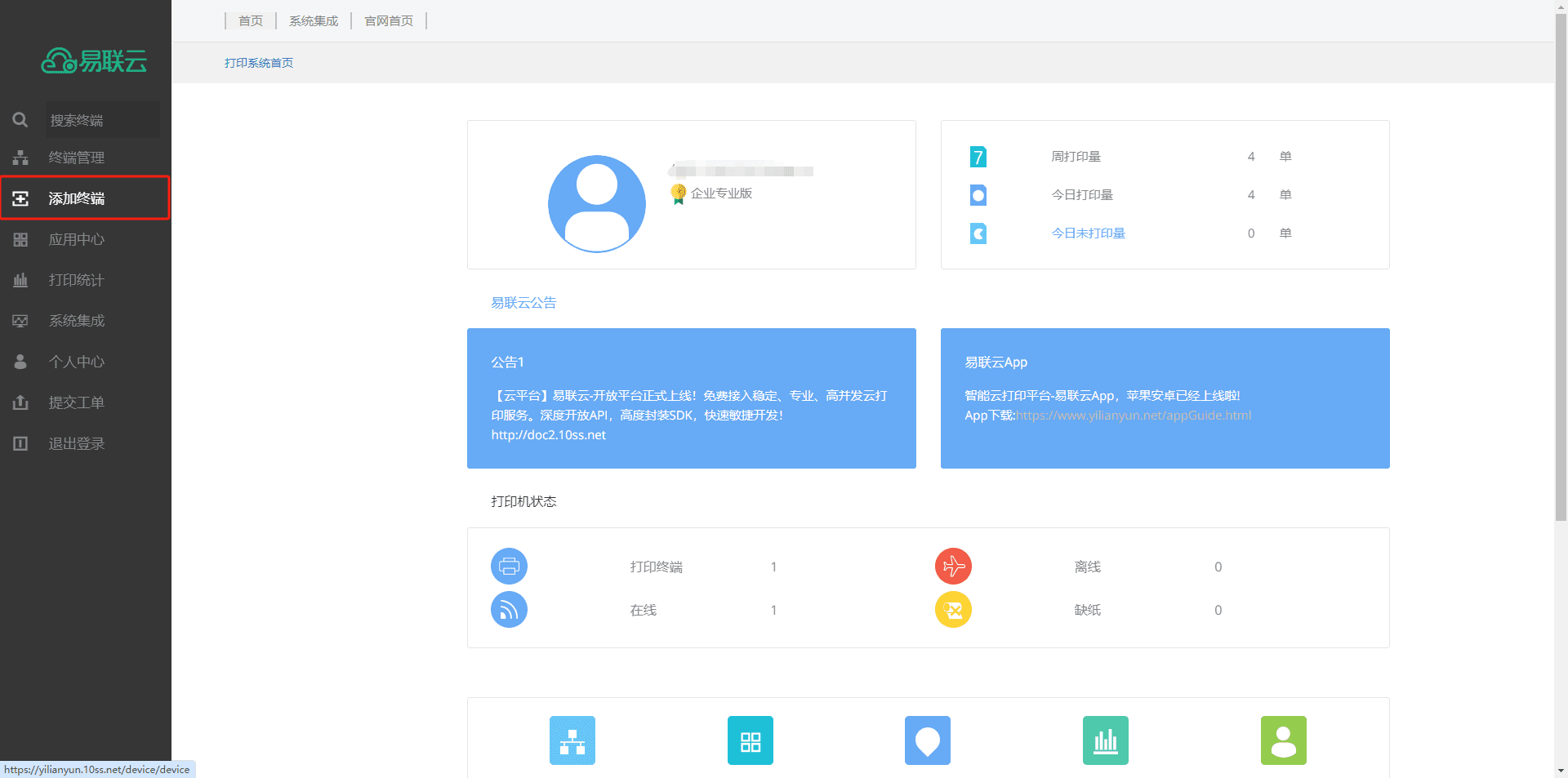 1.打开易联云官网https://yilianyun.10ss.net,输入账号密码登录。