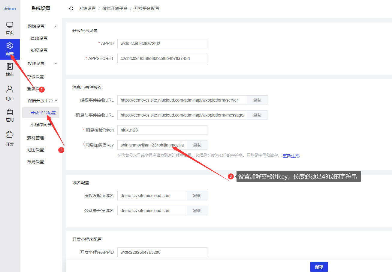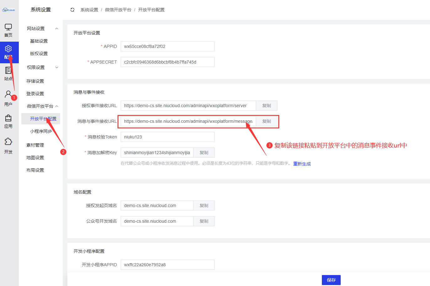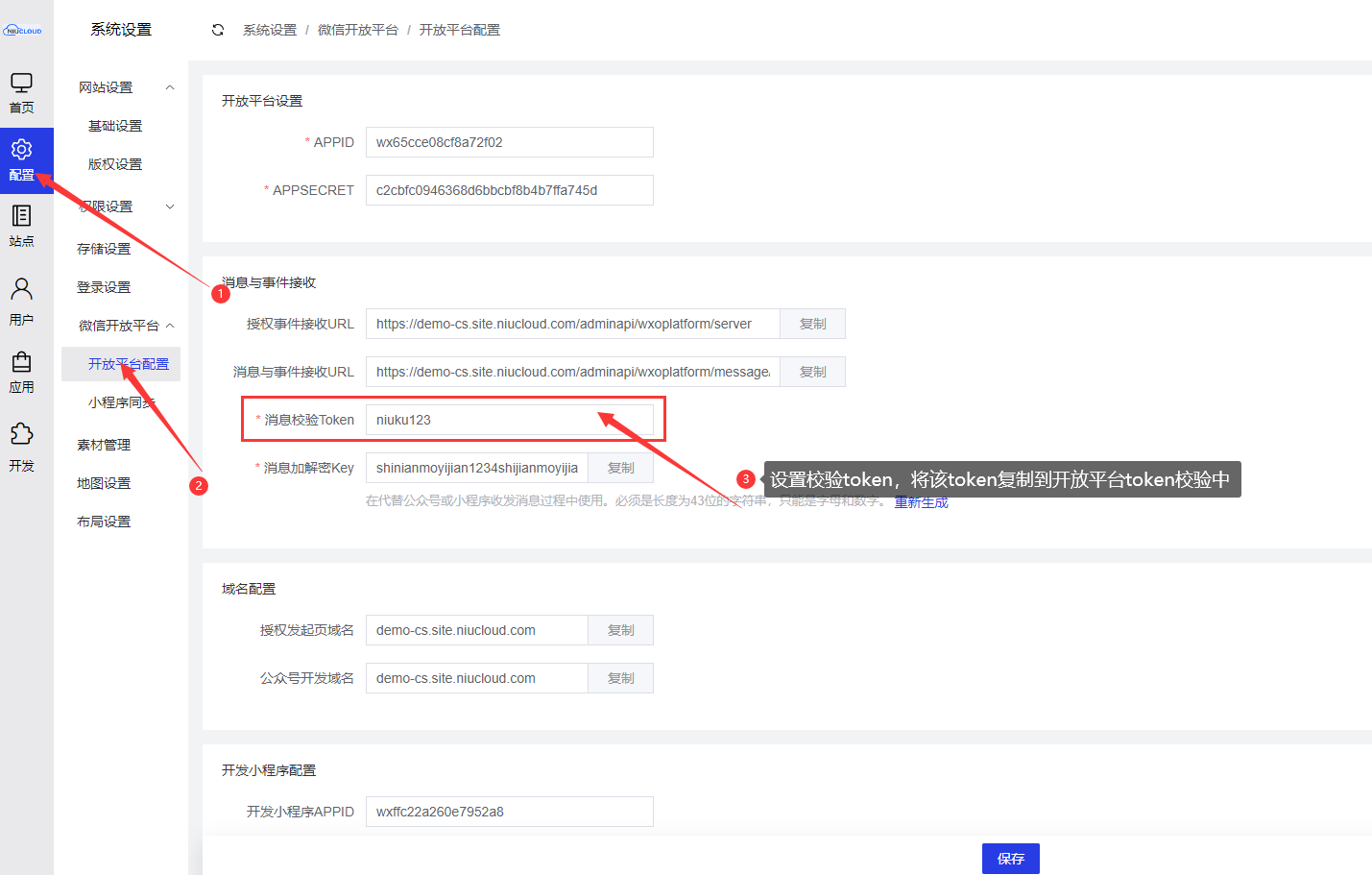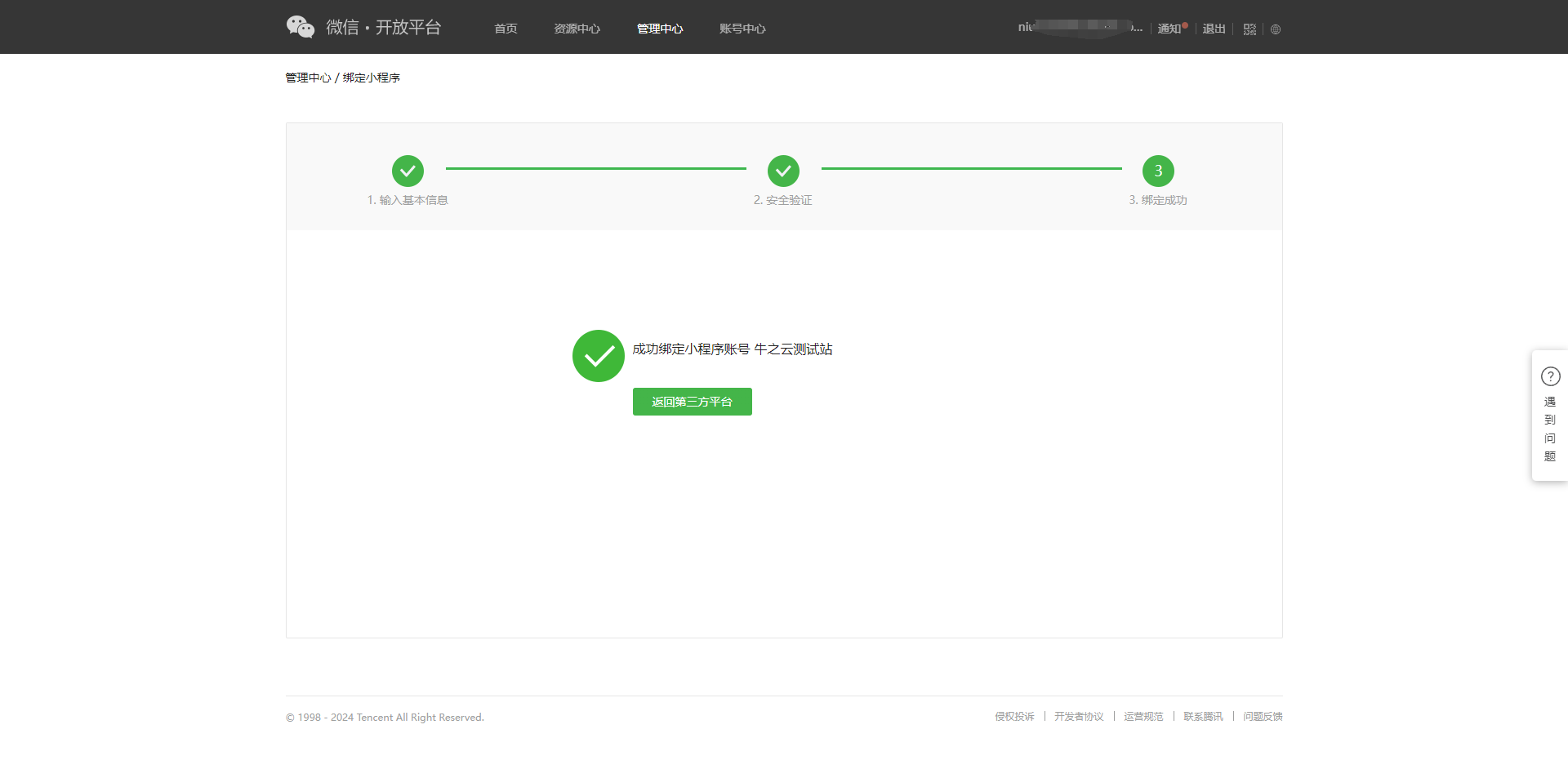 微信扫码,绑定站点要配置的小程序(注意:小程序必须是已认证并且未被其他站点绑定过才行)