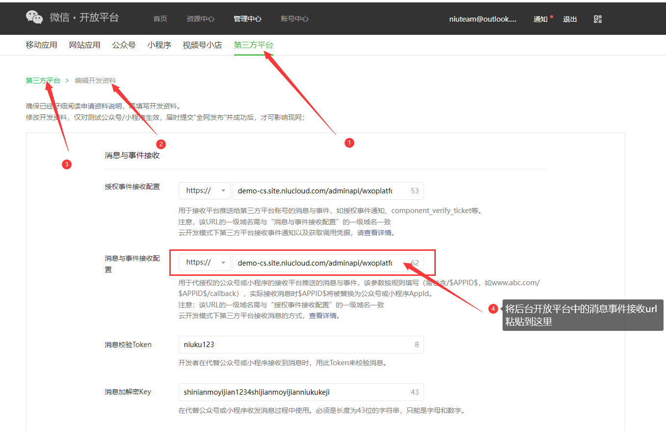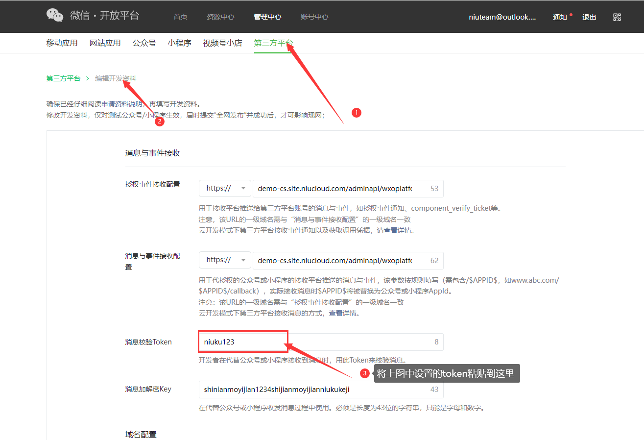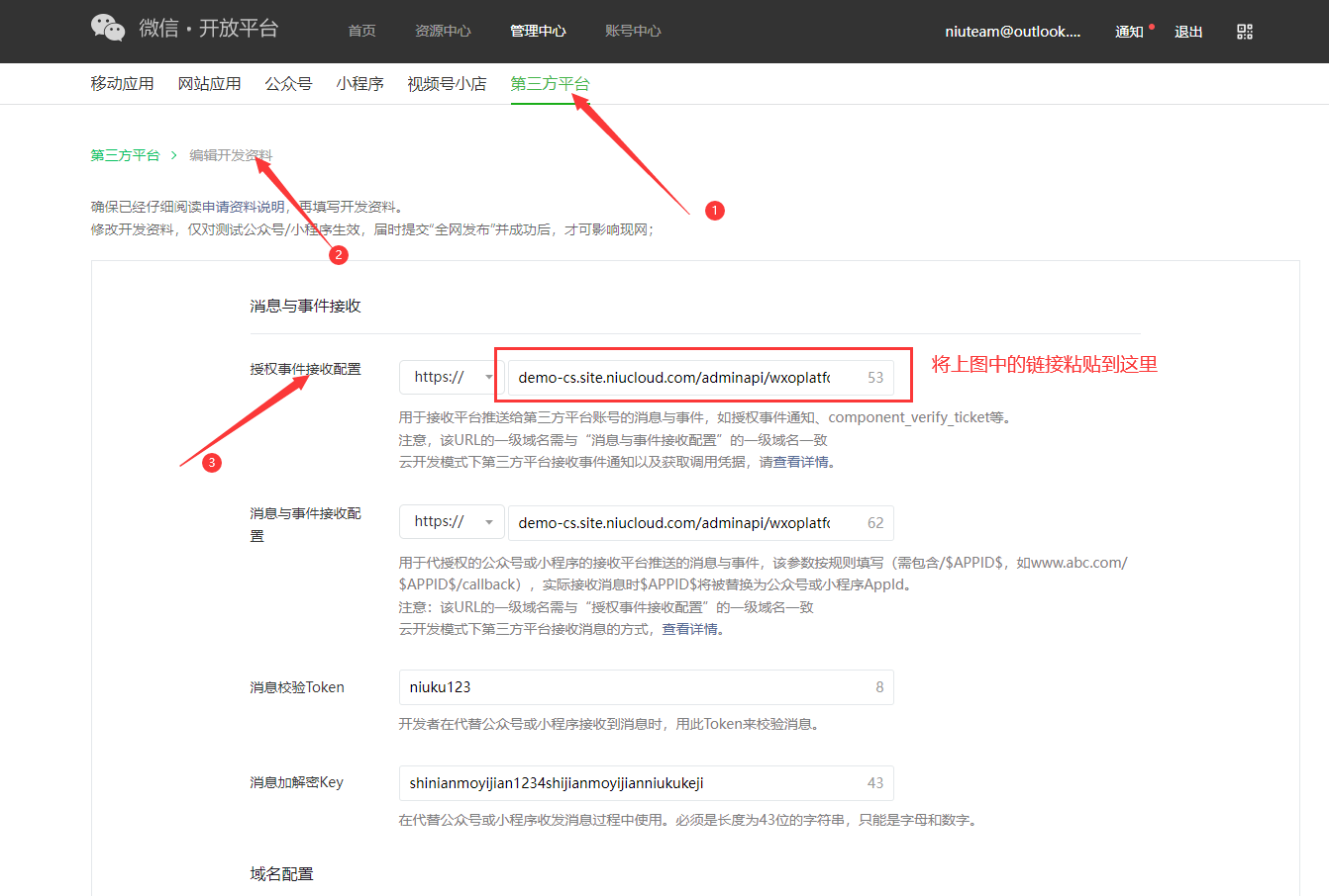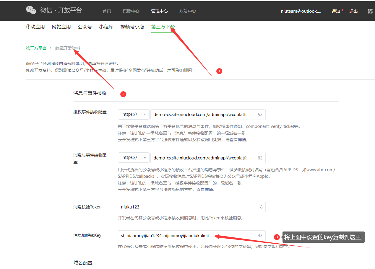 微信扫码,绑定站点要配置的小程序(注意:小程序必须是已认证并且未被其他站点绑定过才行)