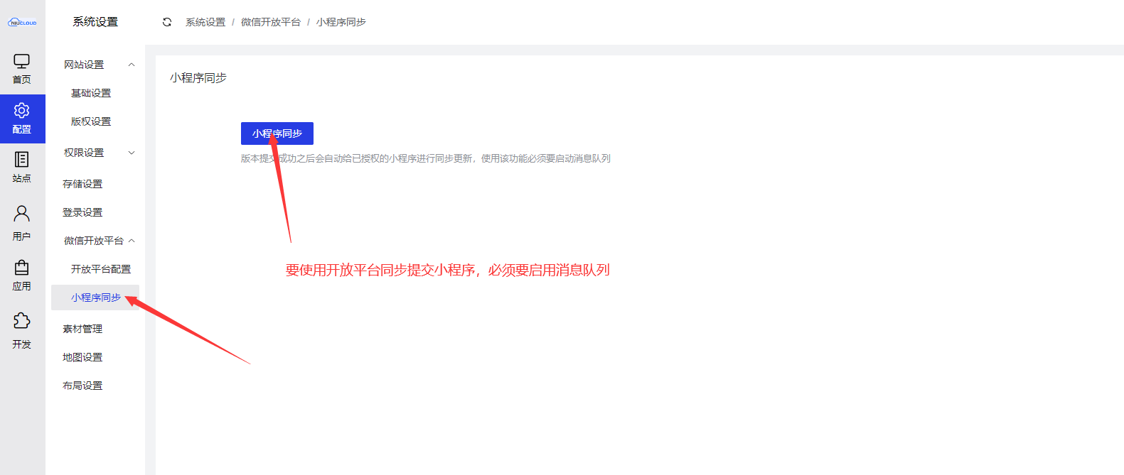要托管小程序,版本提交成功后,小程序同步审核发布,必须要开启消息队列,队列开启手册链接
