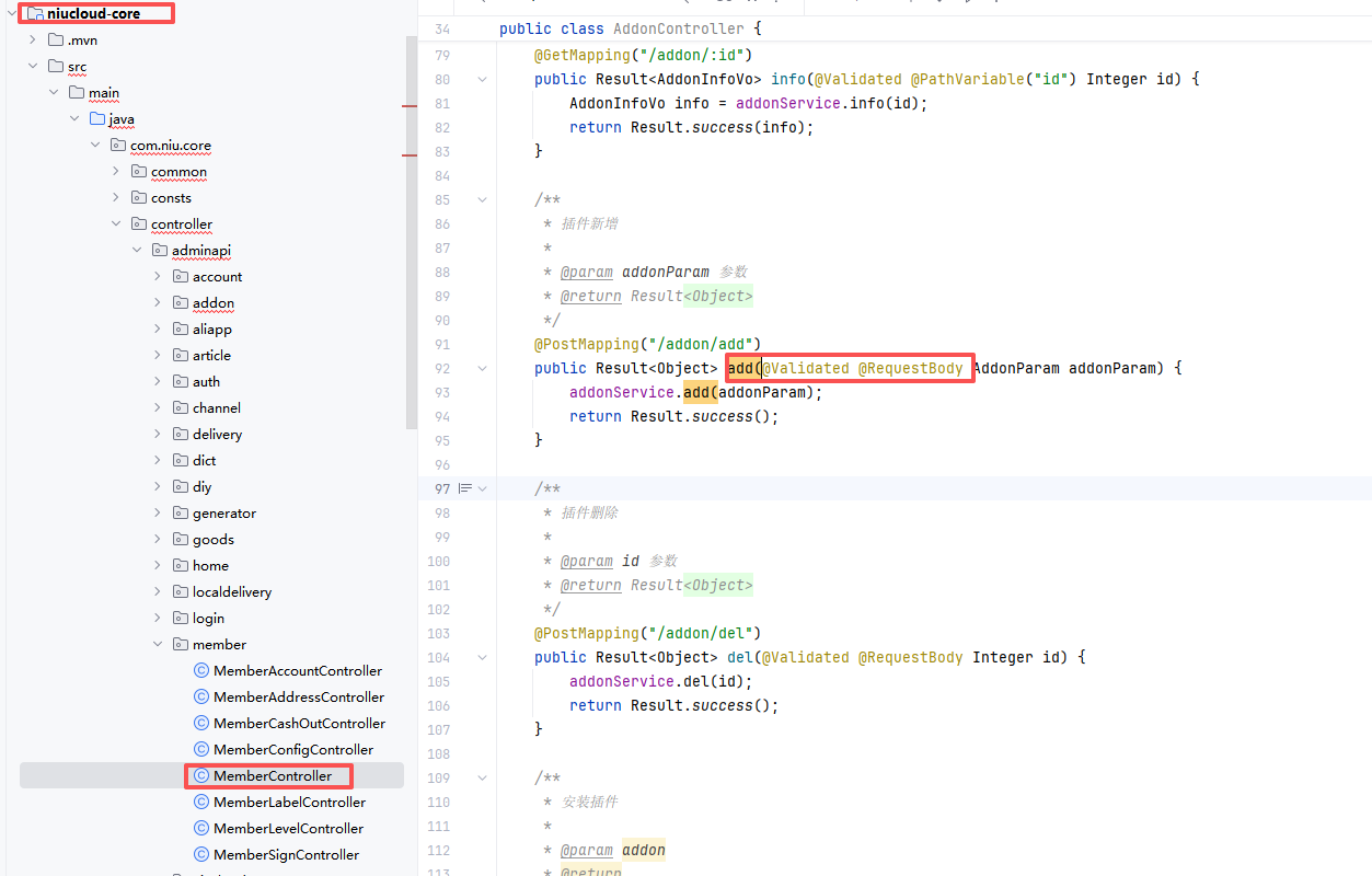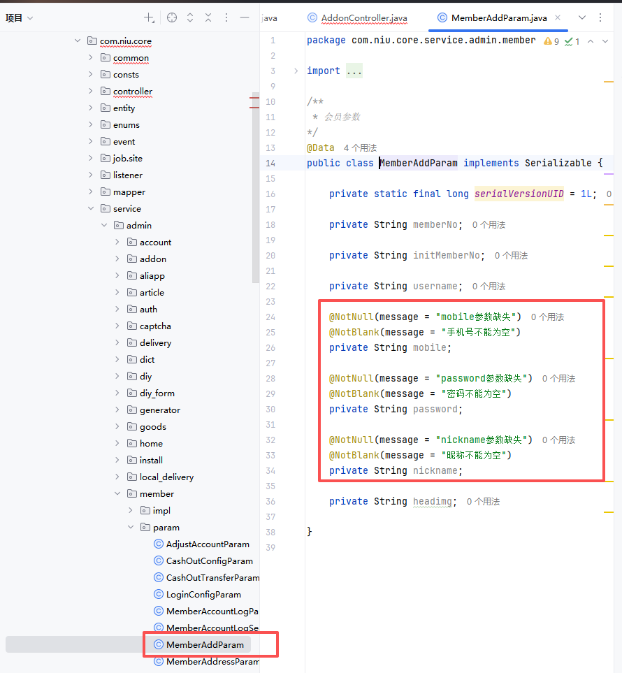 比如上述的 memberAddParam 在 service/admin/member/param 下