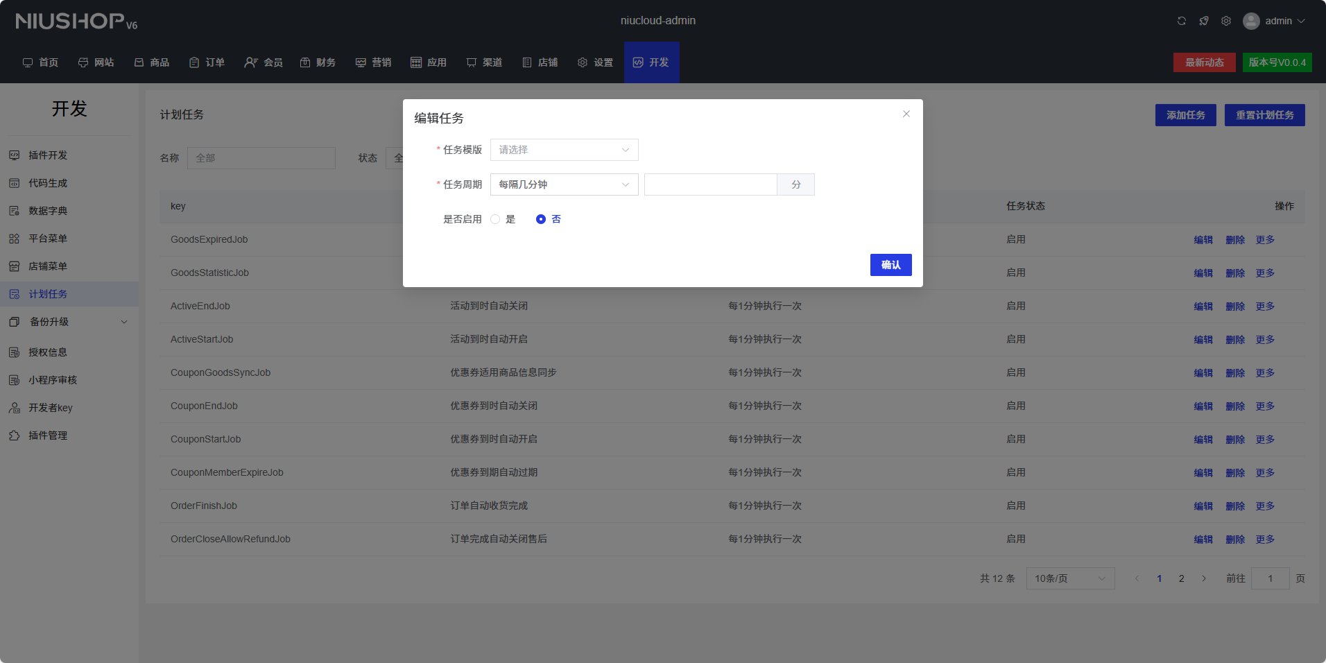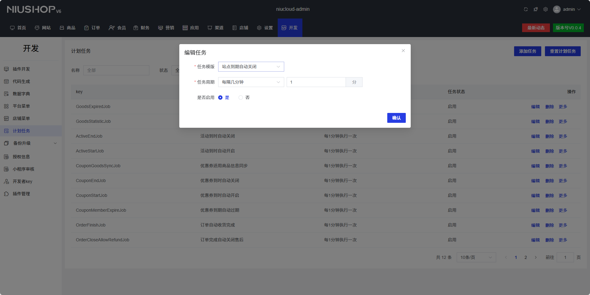 添加任务后重启,登录后台,开发->计划任务->添加任务