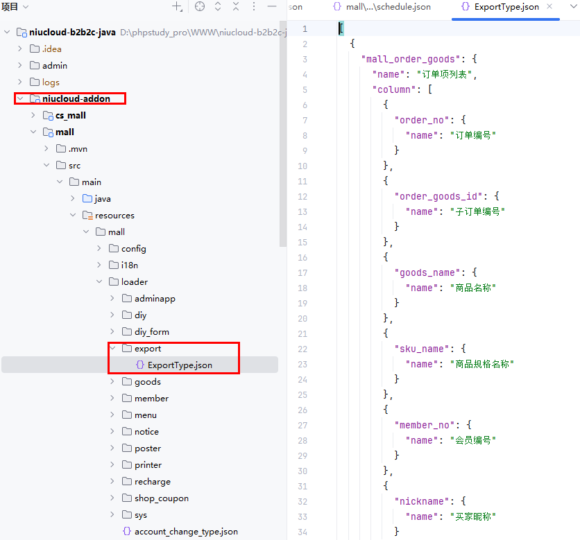 在 niucloud-addon/插件名称/src/main/resources/插件名称/loader/export/ExportType.json 中添加新的数据类型
