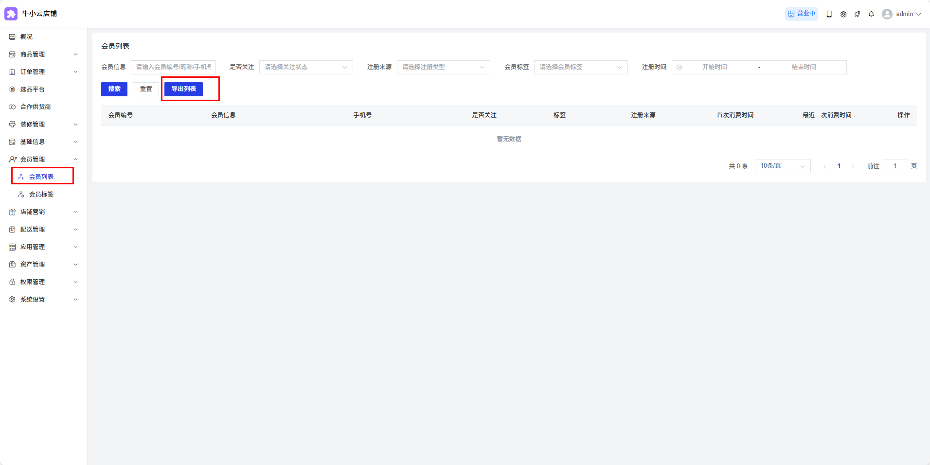 以会员列表导出功能举例: