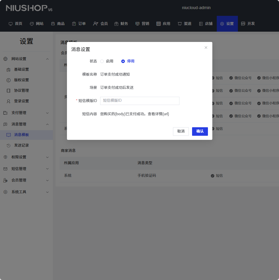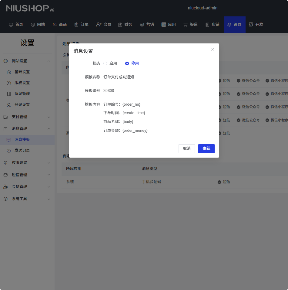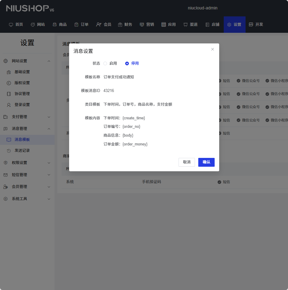 "name": "订单支付成功通知", // 模板名称,消息类型的名称