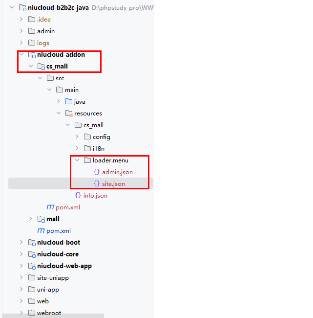 平台管理端端菜单项在 niucloud-addon/cs_mall/src/main/resources/cs_mall/loader/menu/admin.json