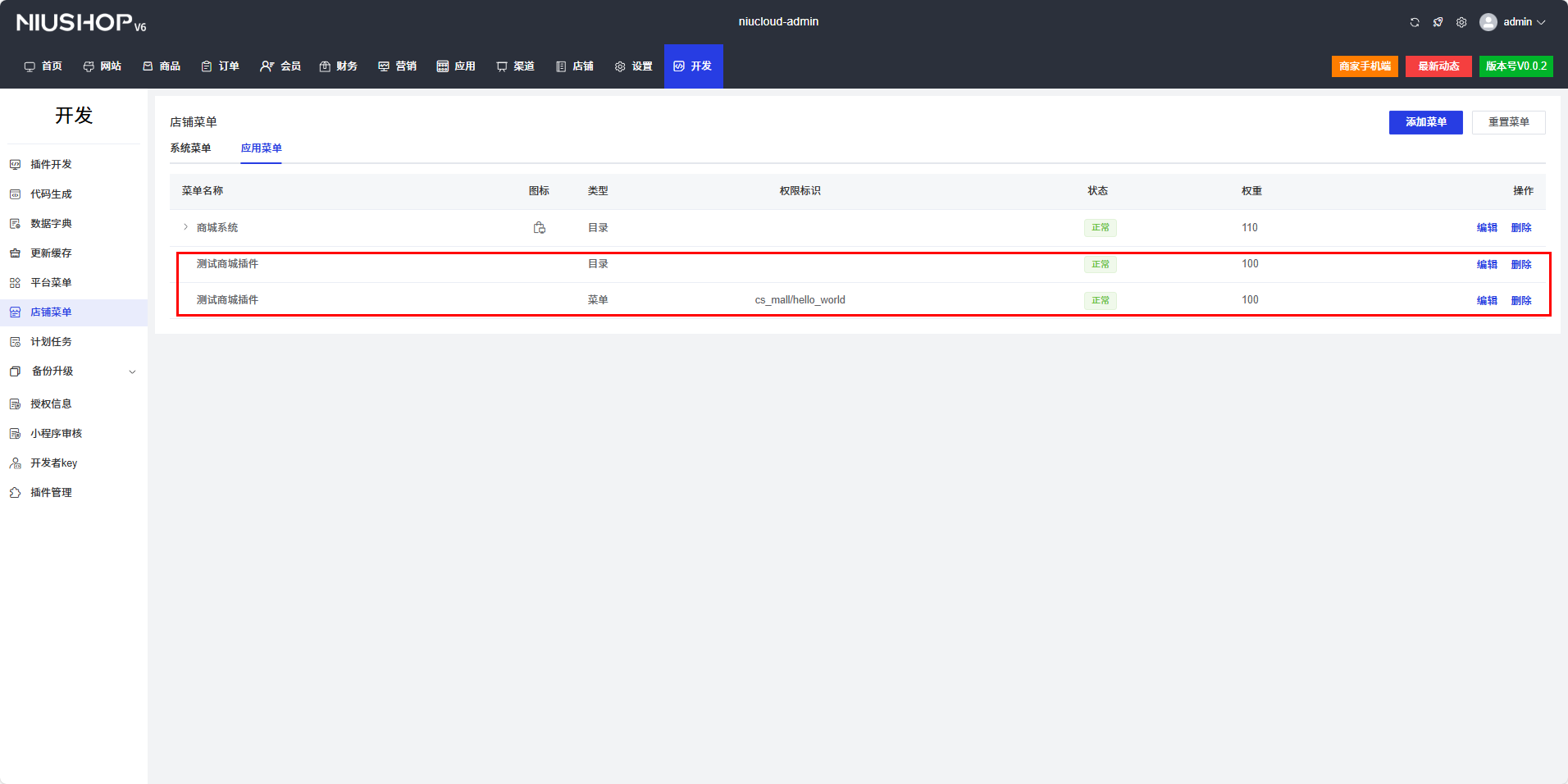 "menu_name": "测试商城插件",