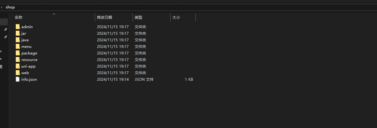 下面是打包商城插件解压后的目录结构,也就是插件包的整体文件结构,关于插件的安装可以查看本地调试里面的插件安装