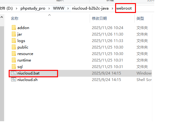 双击脚本: webroot/niucloud.bat运行,选择: 1