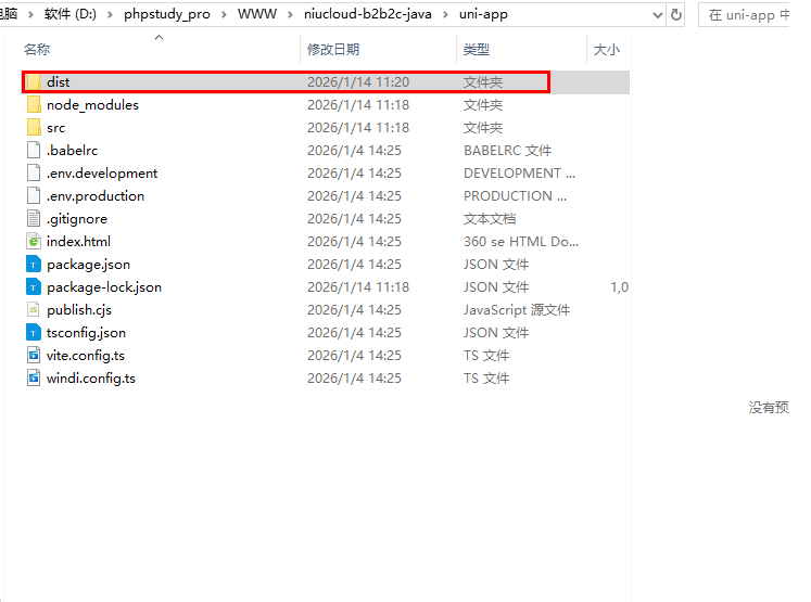 完成编译后在根目录下的 uniapp 目录下会生成 dist 文件夹