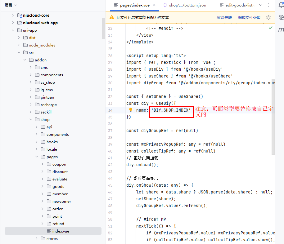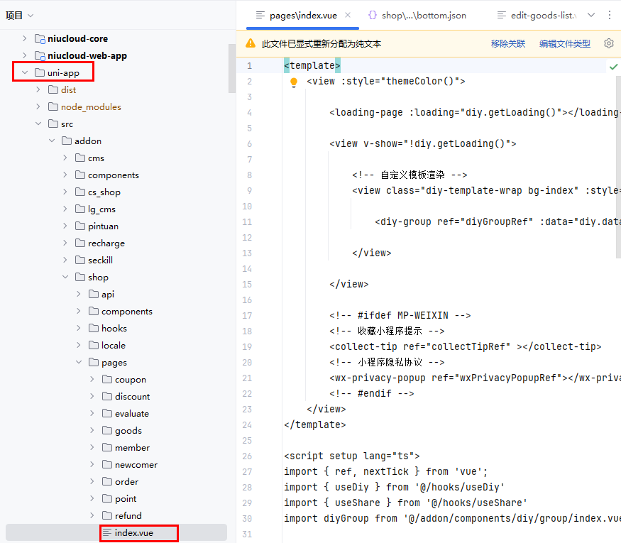 文件位置:uni-app/src/addon/shop/pages/index.vue