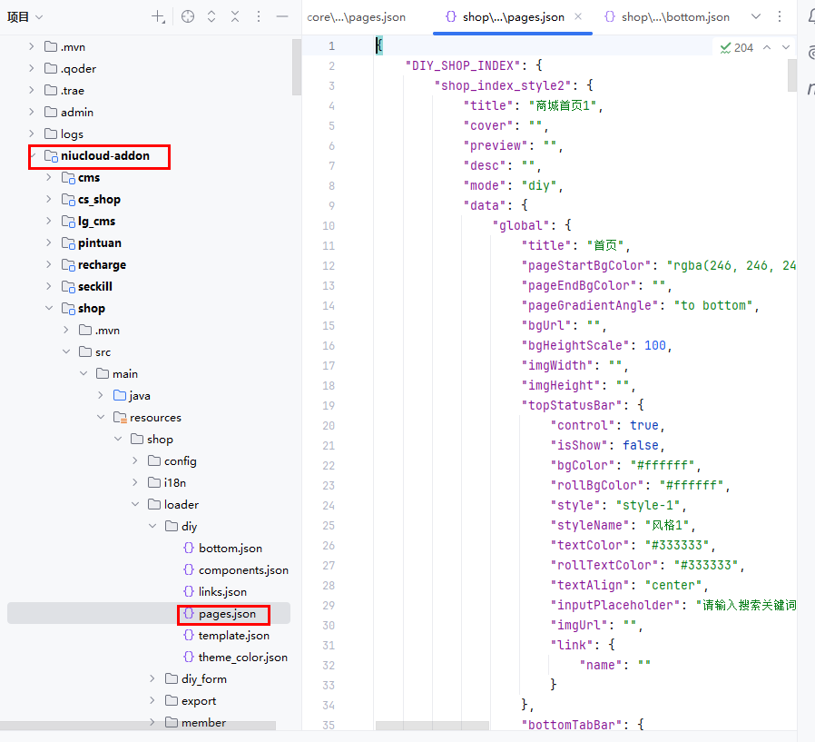 文件位置:niucloud-addon/shop/src/main/resources/shop/loader/diy/pages.json