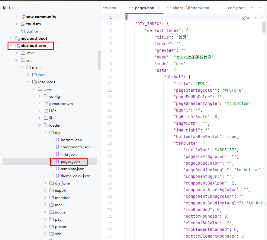 文件位置:niucloud-core/src/main/resources/core/loader/diy/pages.json