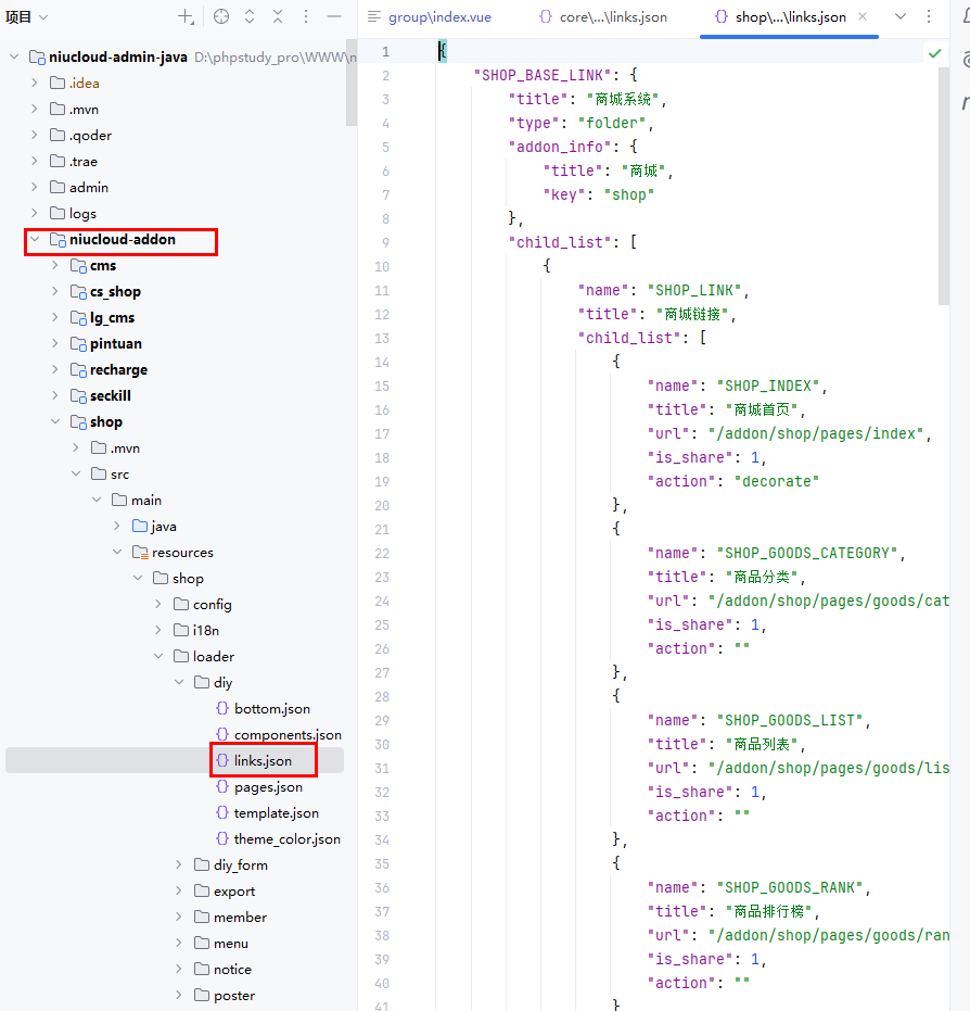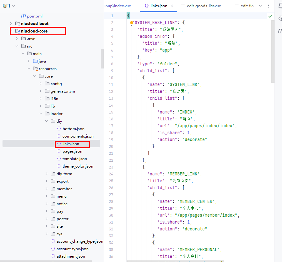 文件位置:niucloud-core/src/main/resources/core/loader/diy/links.json