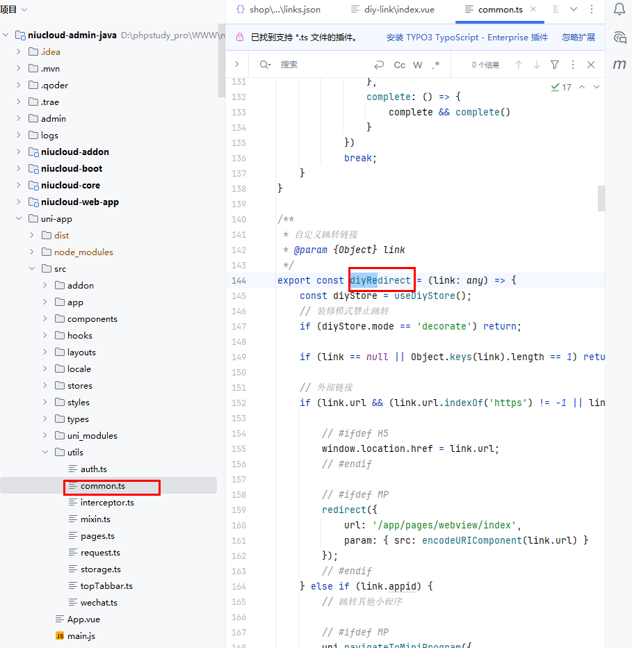 框架定义了 diyRedirect 自定义跳转链接方法
