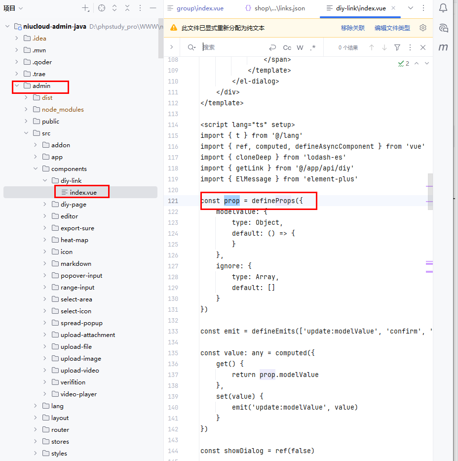 文件位置:admin/src/components/diy-link/index.vue