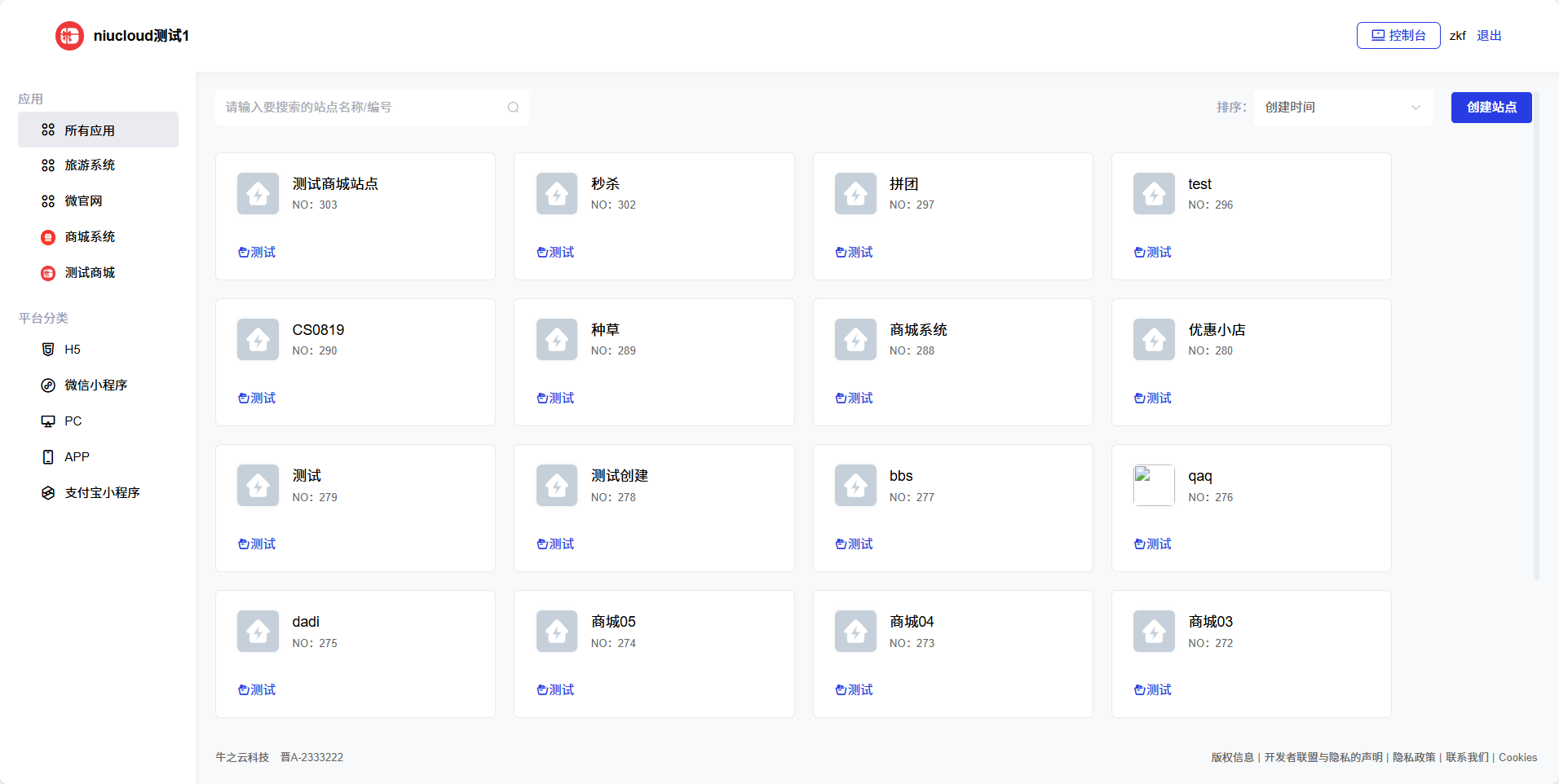 niucloud 系统是 saas 系统,支持多应用多站点设计,系统框架安装之后可以安装应用,创建套餐与站点,上一节讲解了插件安装,本节重点讲解添加站点
