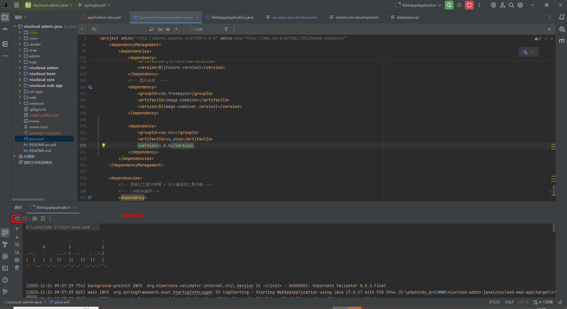 由于在开发环境下 java 是编译运行的,插件安装成功之后需要在 idea 中重启项目