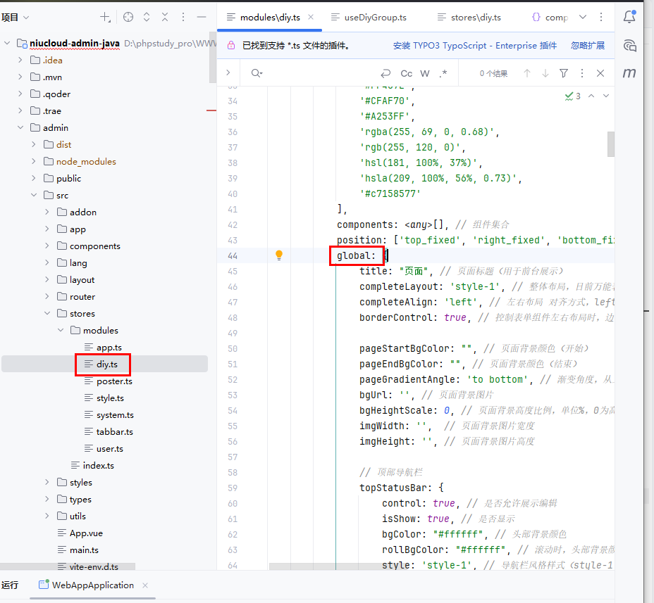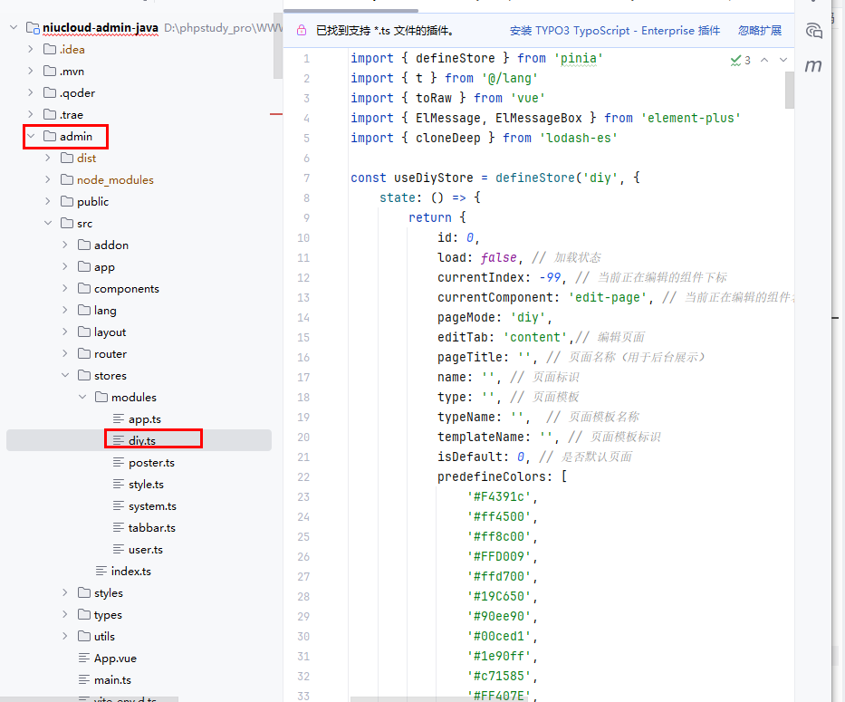 文件位置:admin\src\stores\modules\diy.ts
