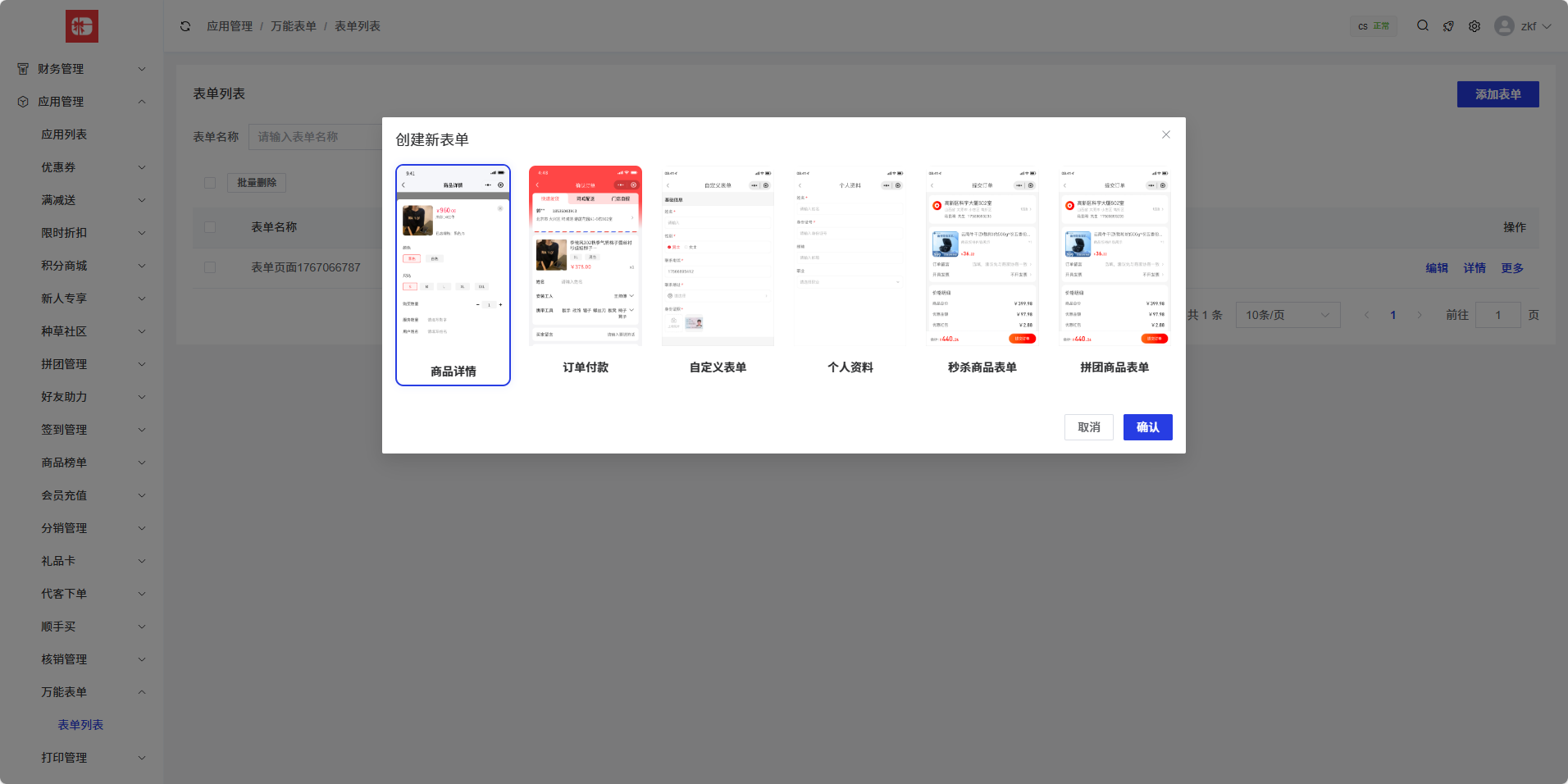 框架开发的自定义表单装修
