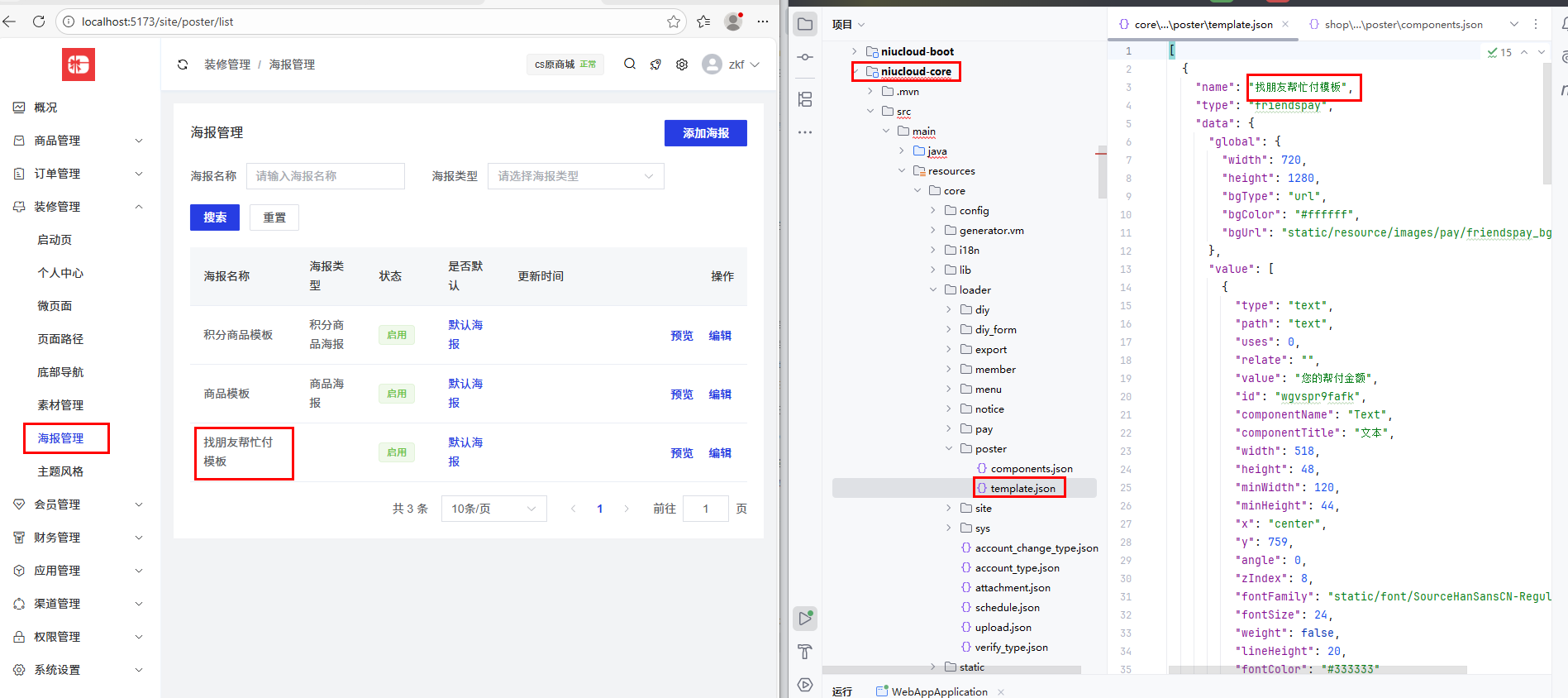 框架提供了默认的海报模板,位于 niucloud-core/src/main/resources/core/loader/poster/template.json