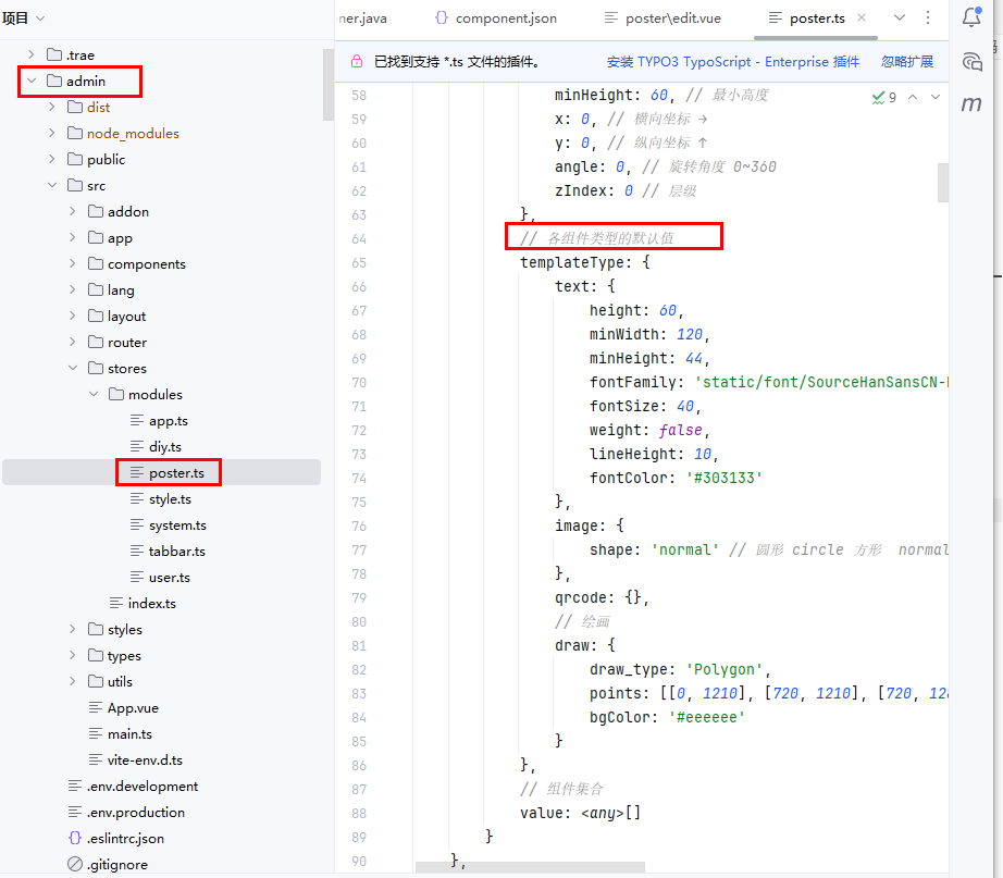 这里是系统框架定义的海报组件,还包括加载插件的海报组件,可供借鉴参考
