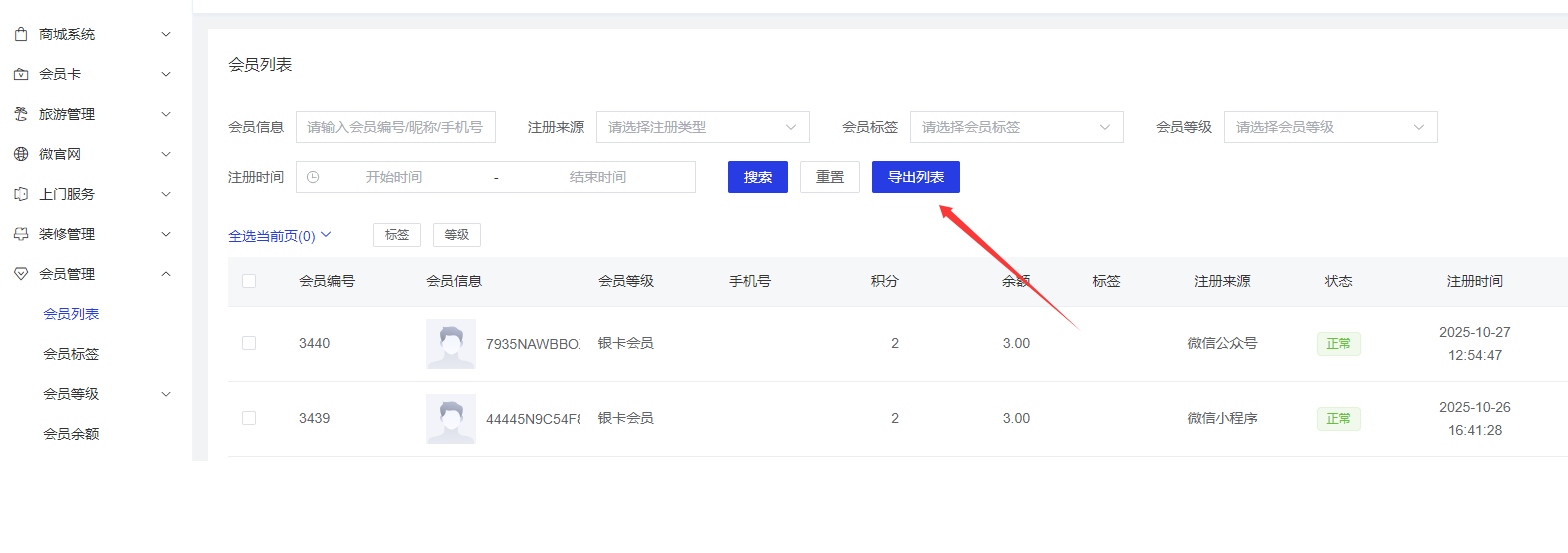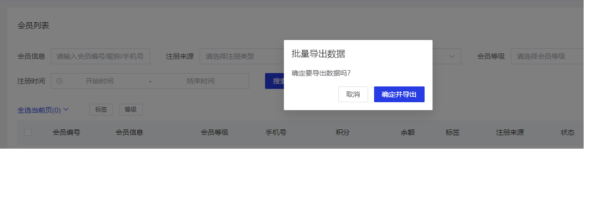以会员列表导出功能举例: