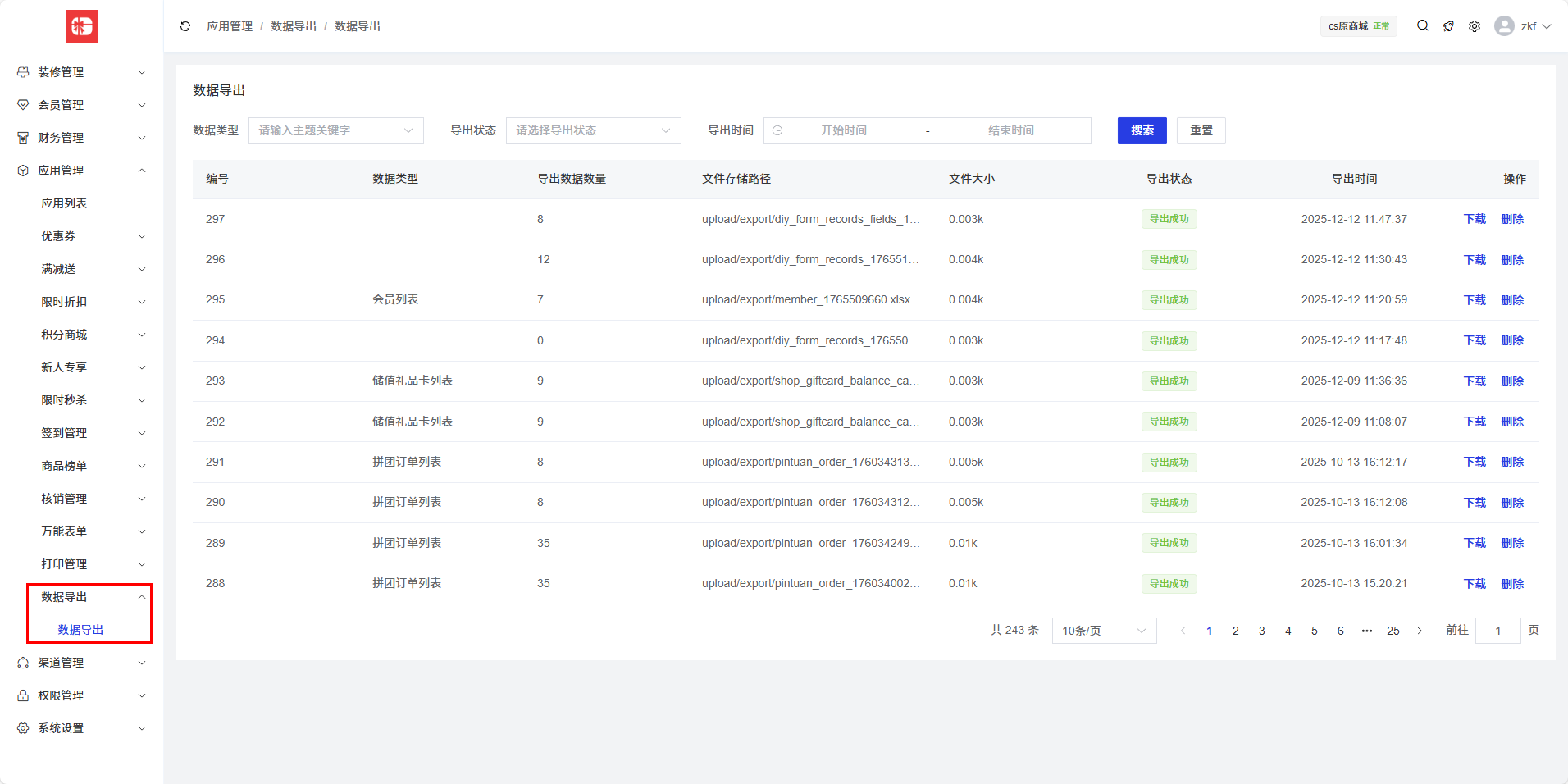 框架已经封装了数据导出功能,所有导出记录都会在这里展示