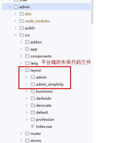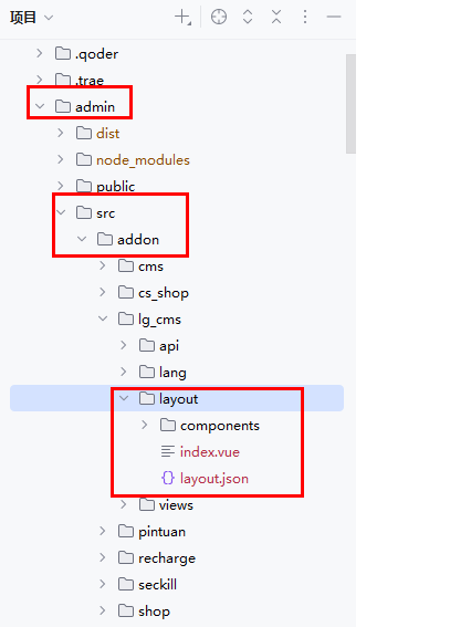 开发自定义布局,需在 admin/src/addon/插件名称/layout/ 文件夹下创建 index.vue、layout.json 的文件
