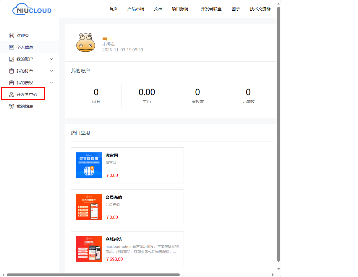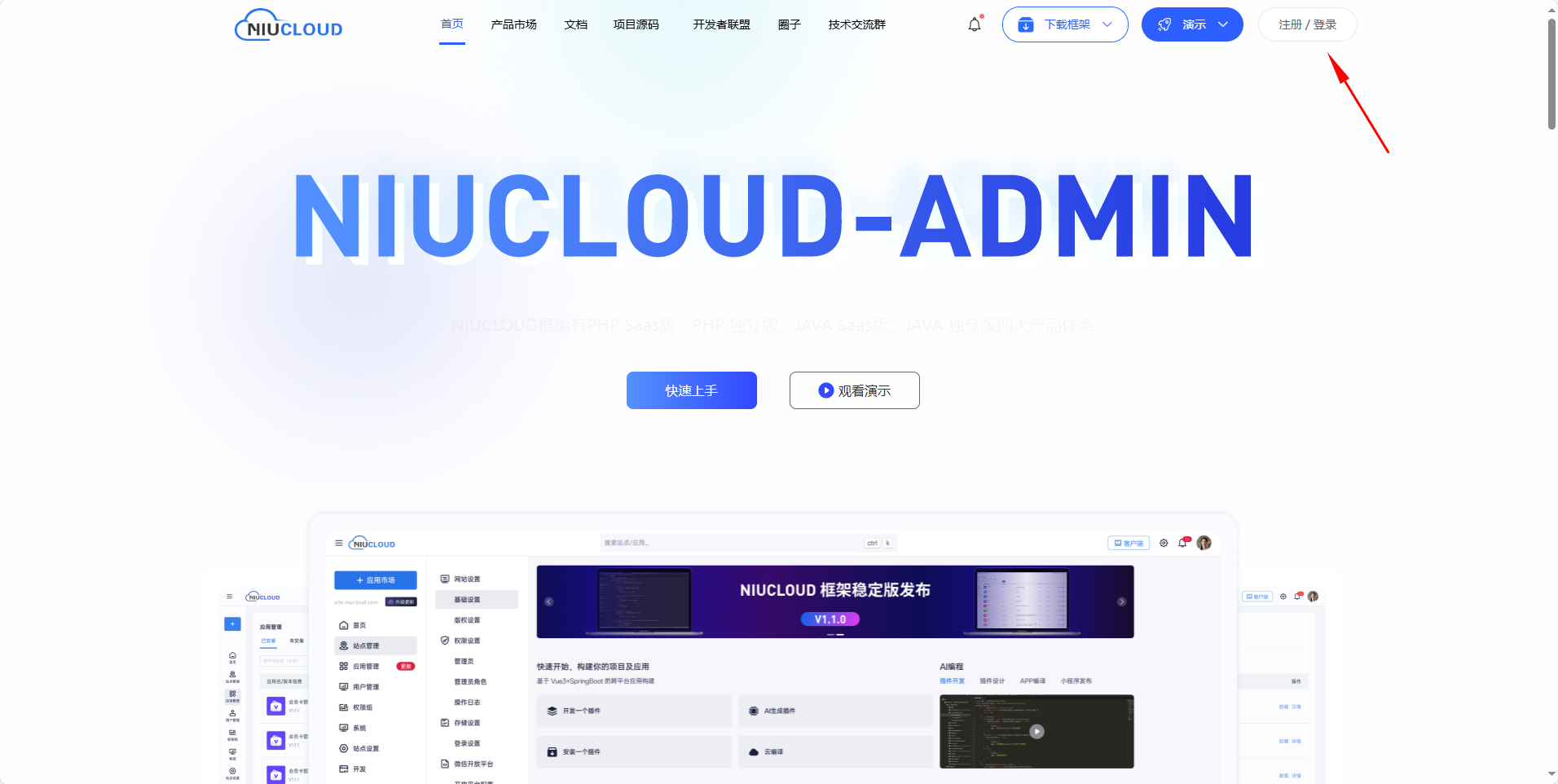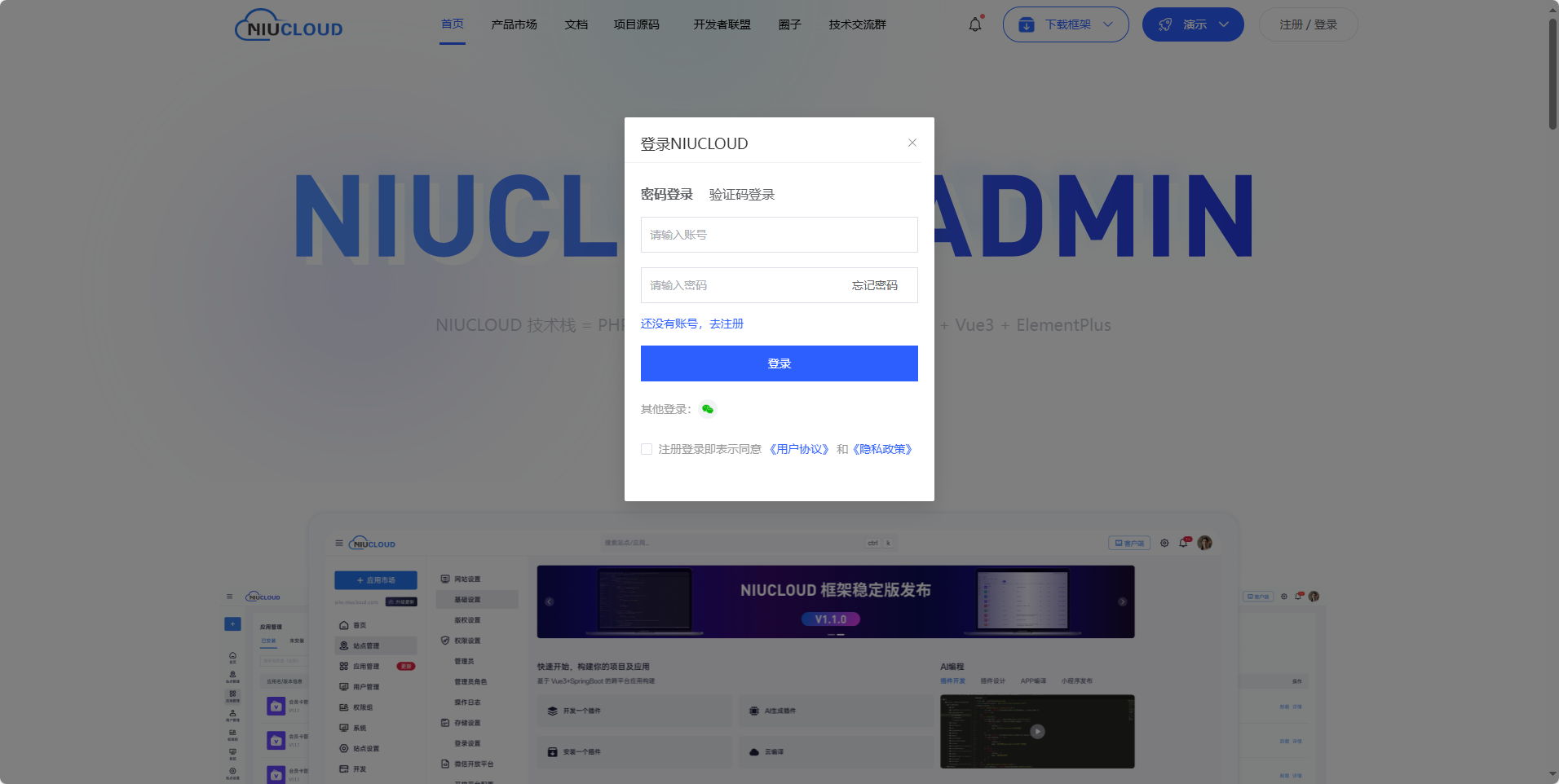 登录 niucloud 官网