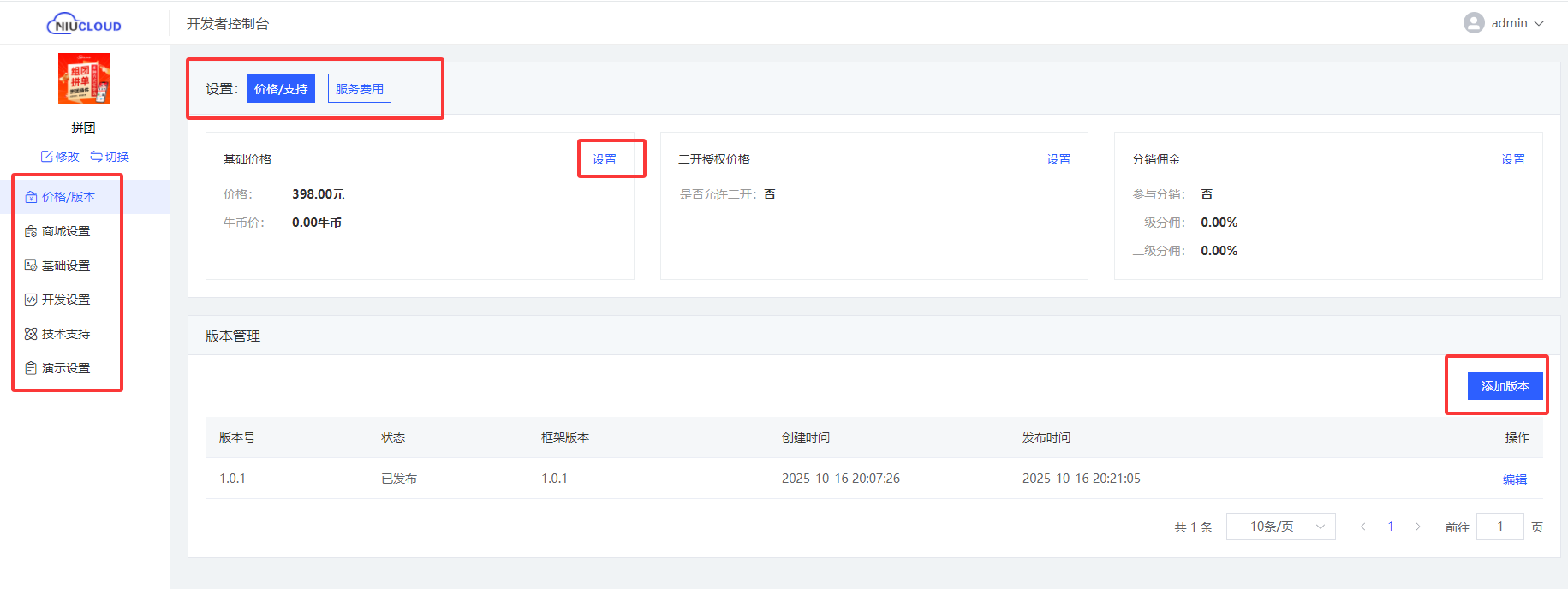 插件在开发完成后,就可以在 niucloud 官网的应用市场进行上架销售
