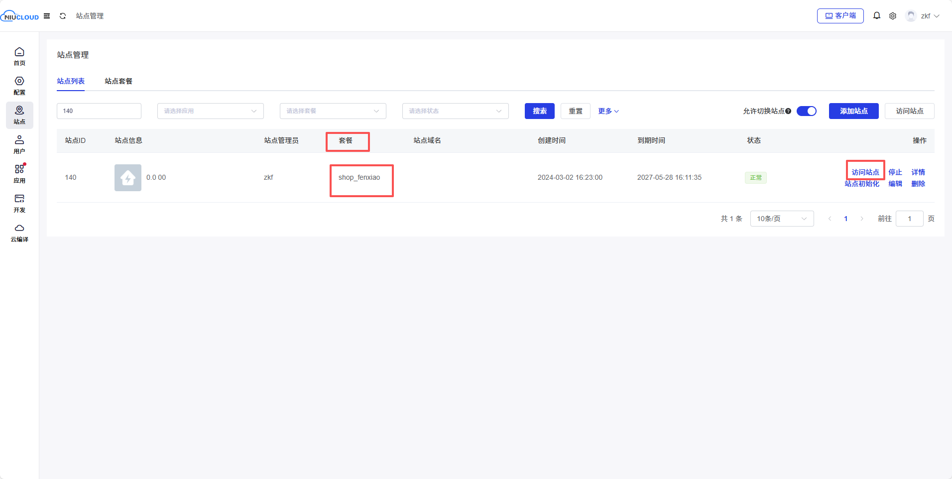 在站点套餐中,点击编辑按钮,在弹出的编辑窗口中,勾选需要添加的插件。