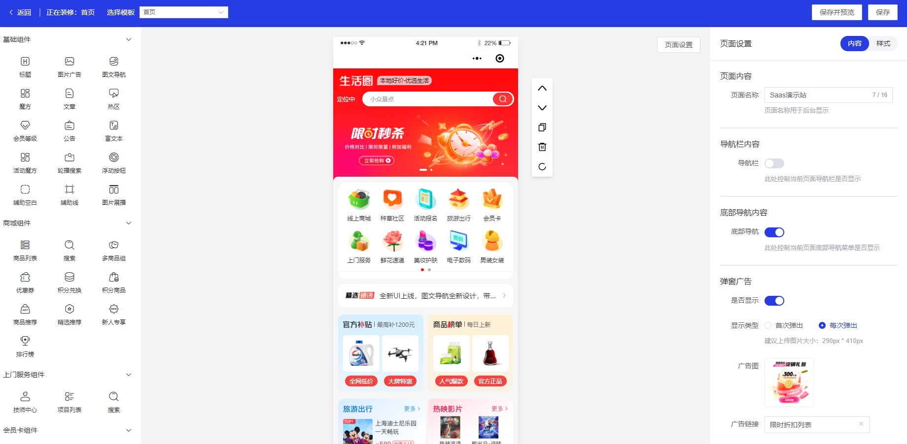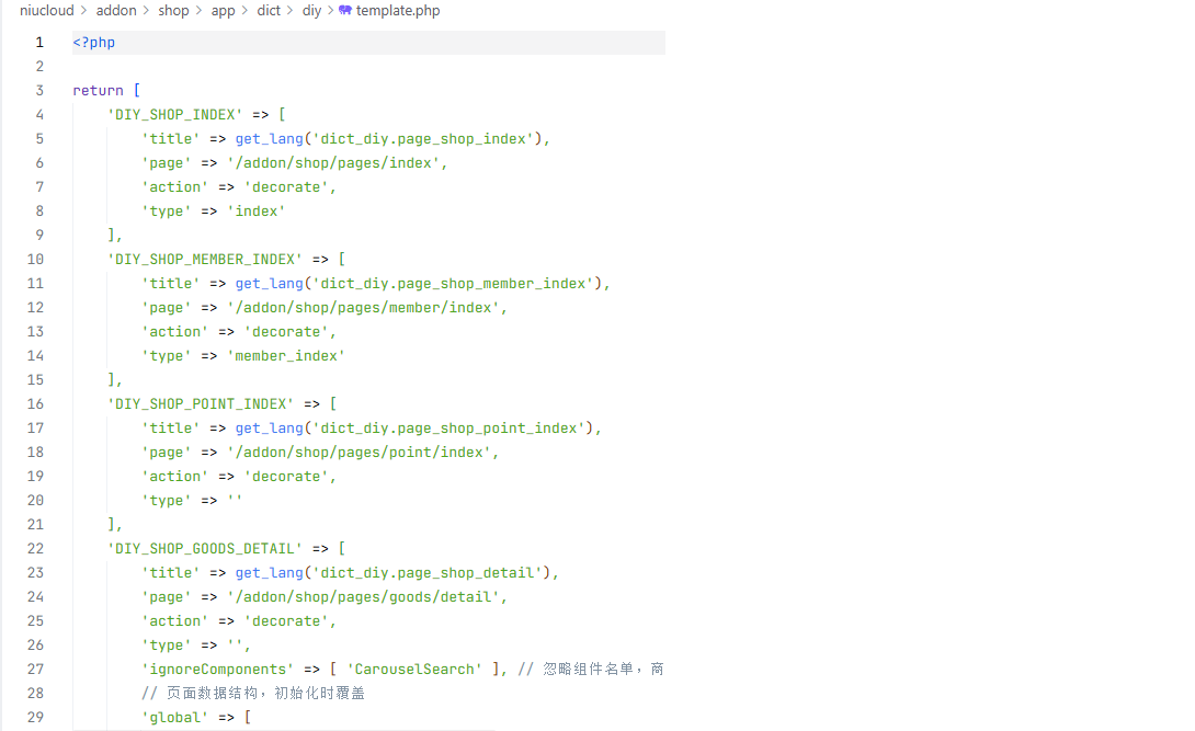 用于自定义装修开发:自定义组件、自定义链接、自定义模板数据、页面类型等