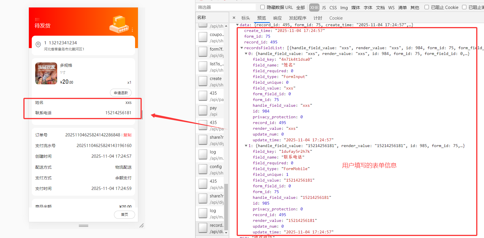 用户填写完表单信息后,开发者根据自身业务需求,自行开发,在需要的地方调用