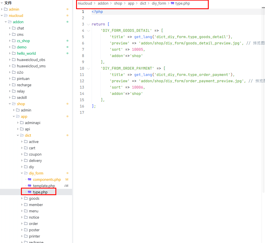 文件位置:niucloud/addon/shop/app/dict/diy_form/type.php