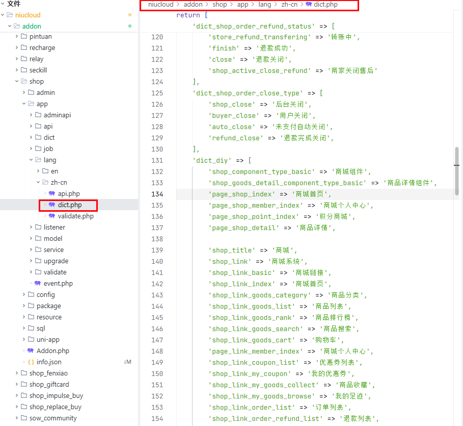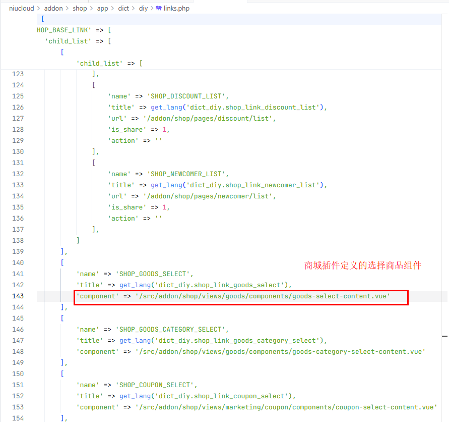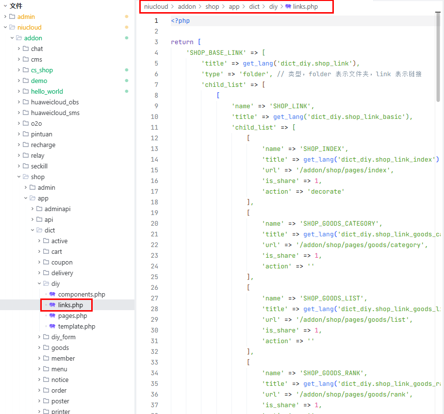 文件位置:niucloud/addon/shop/app/dict/diy/links.php