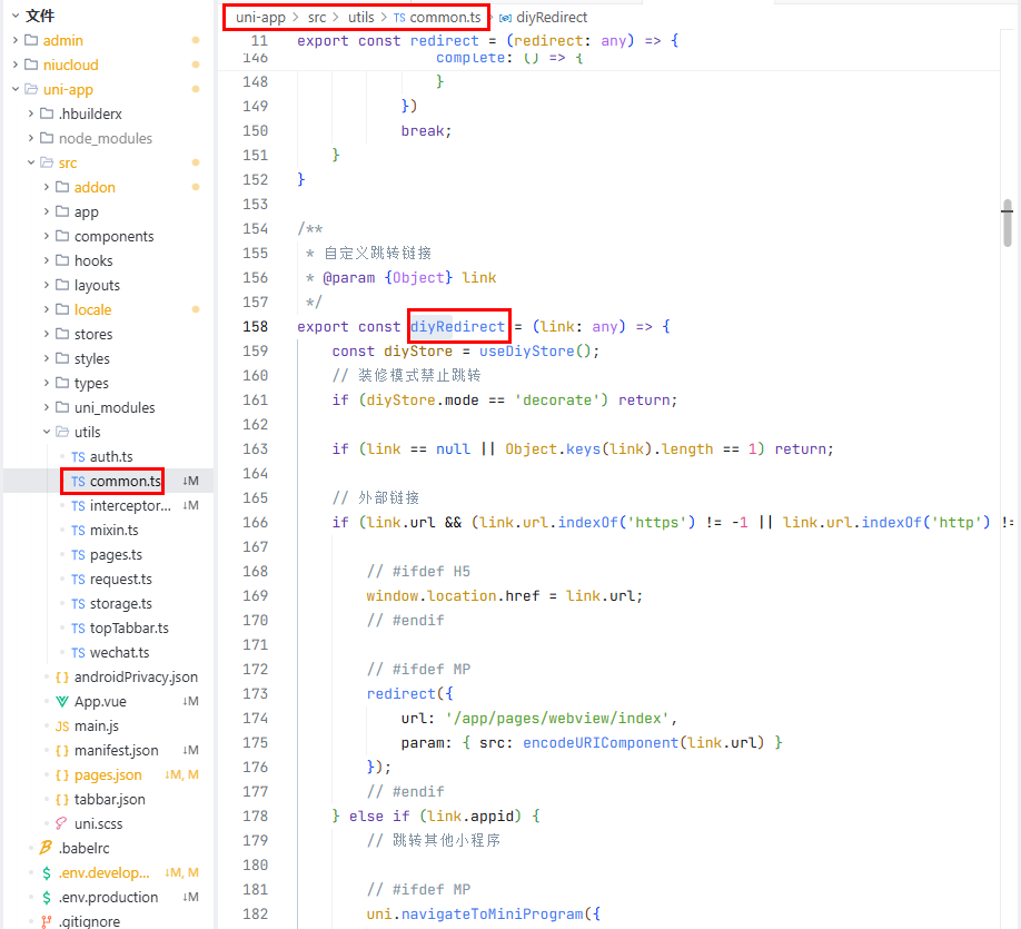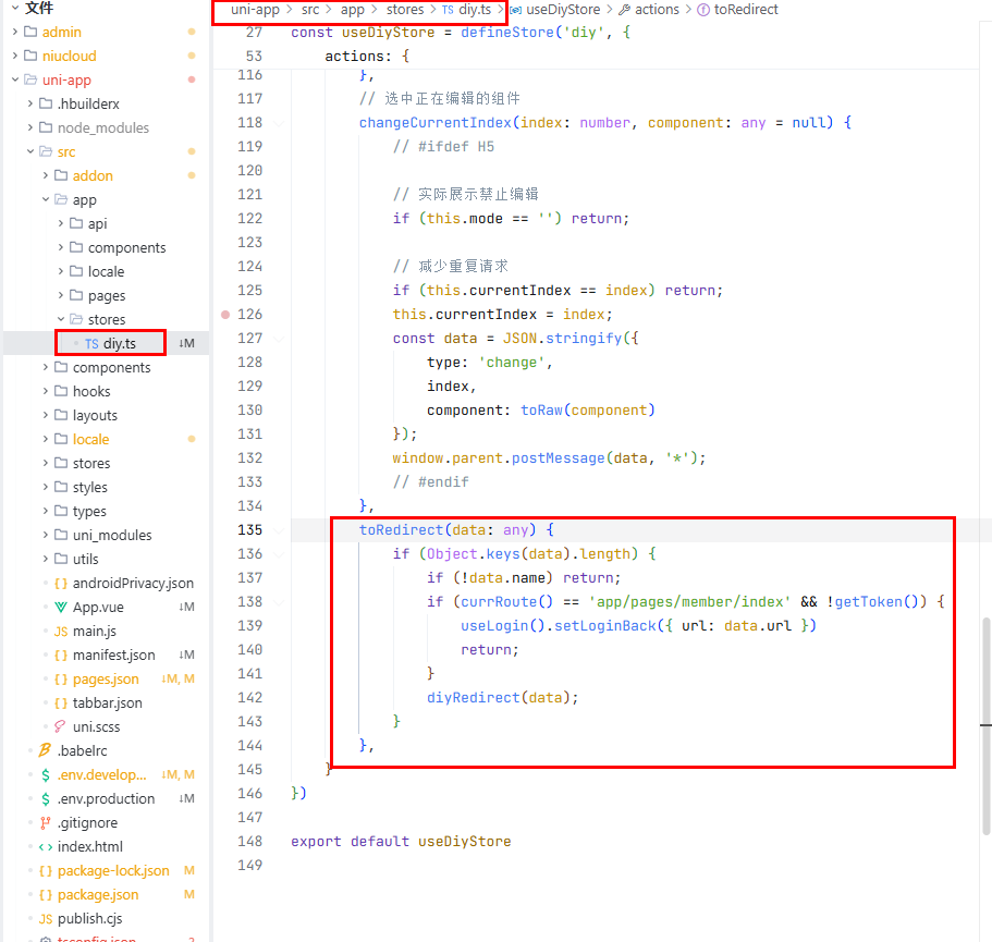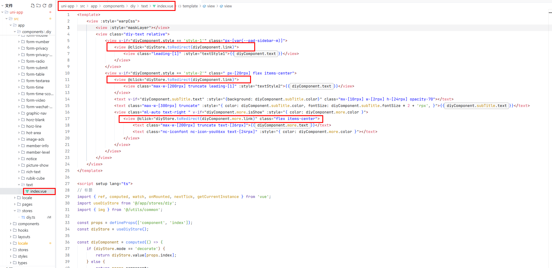 diyStore定义了toRedirect自定义链接跳转方法,开发者可以调用