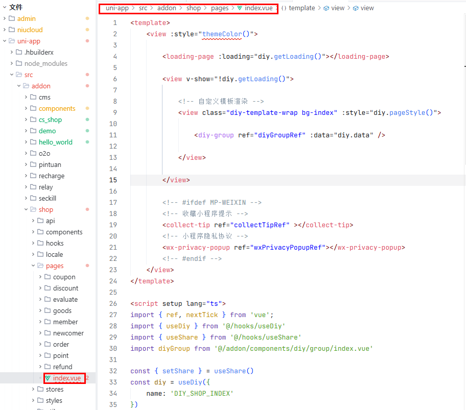 文件位置:uni-app/src/addon/shop/pages/index.vue