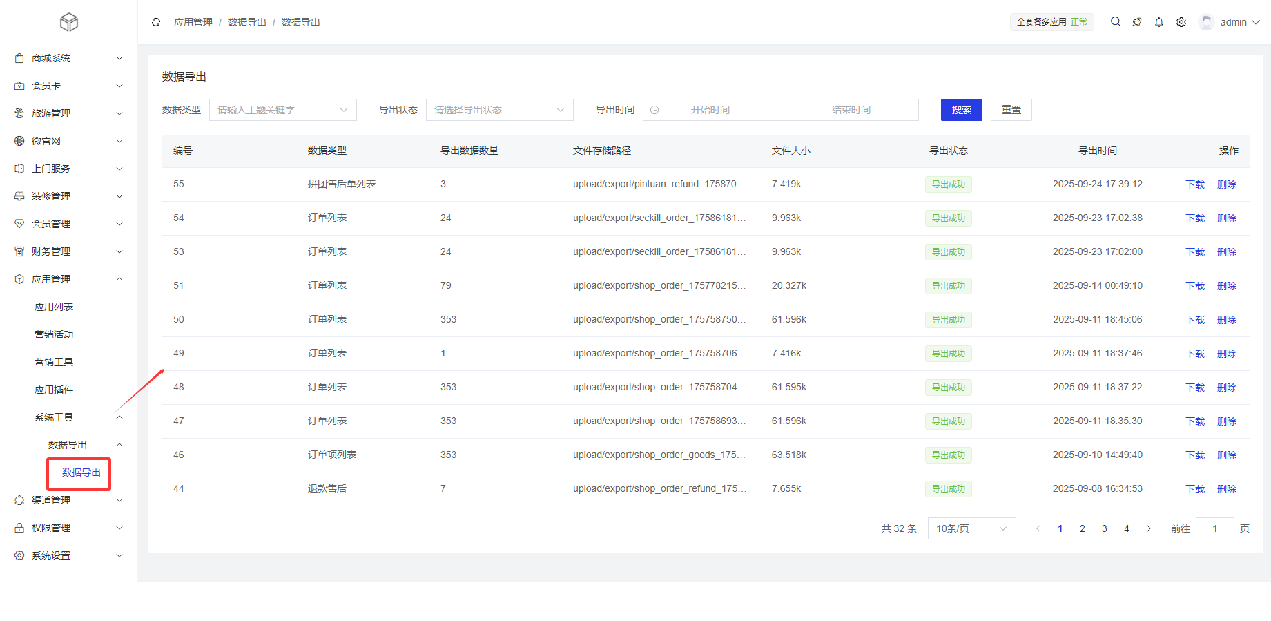 以会员列表导出功能举例: