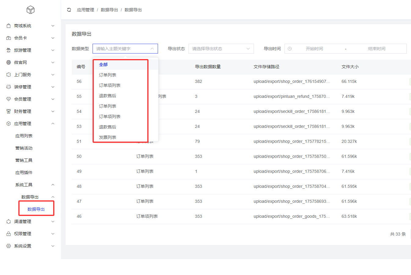 type:数据导出类型
