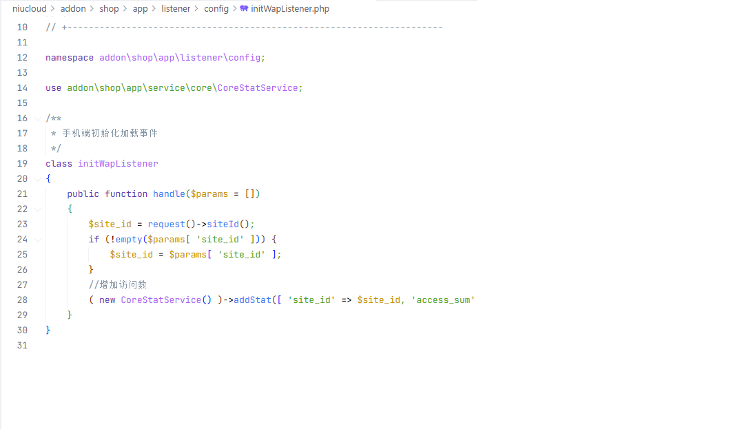 使用场景:访问手机端时会调用该事件,处理后续业务逻辑。例如:增加访问统计、绑定上下级关系等功能
