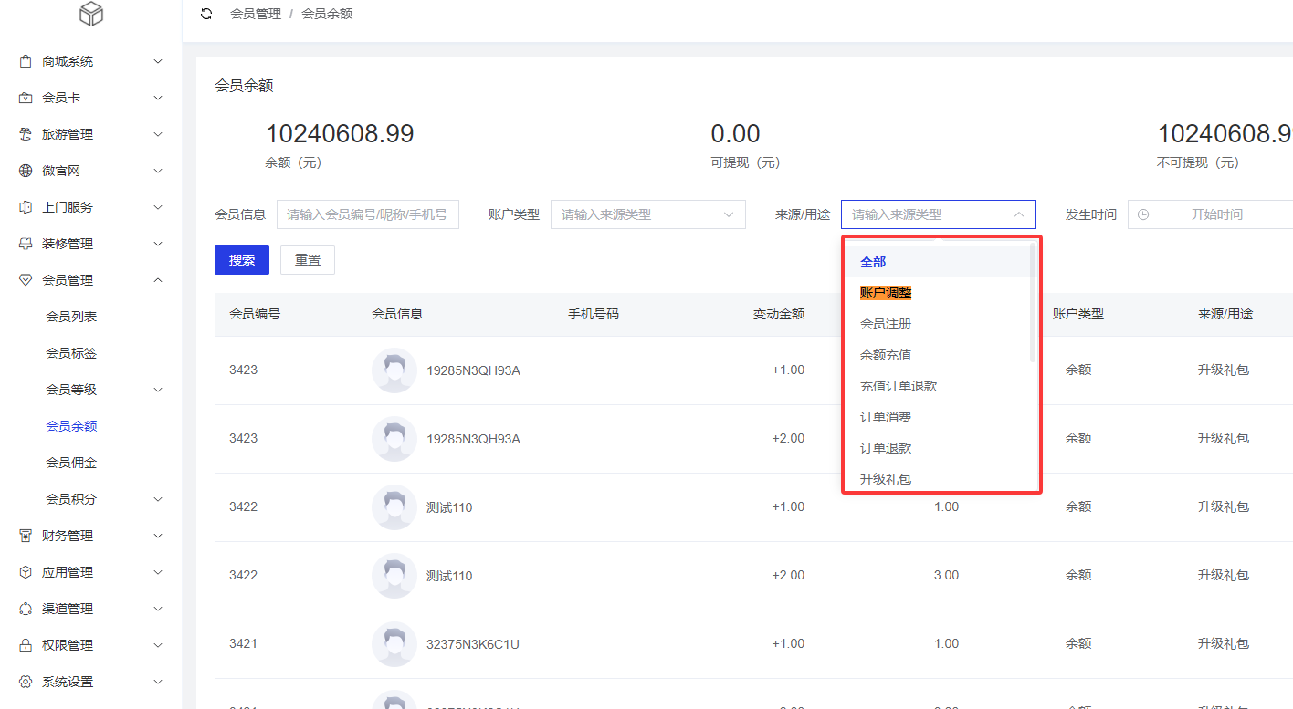 开发者可以根据插件业务需求,定义会员账户类型,用来区分账户的变动逻辑