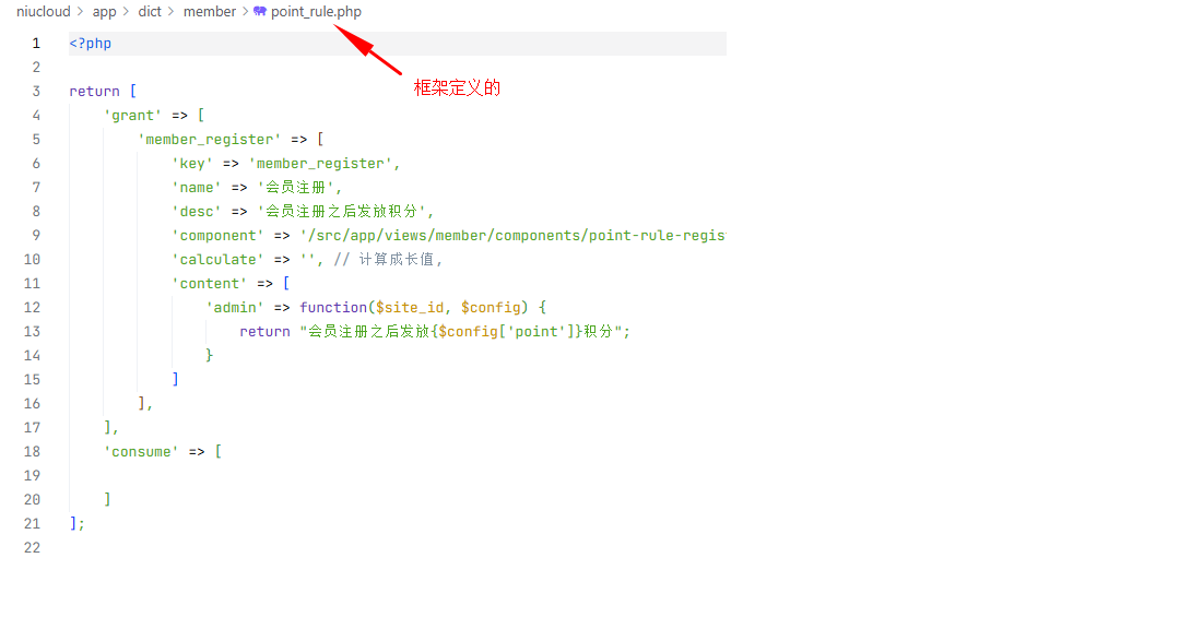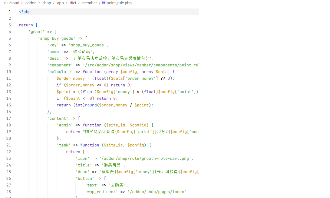 注意:文件名称必须是point_rule.php,框架会寻找所有插件下的这个文件,进行加载